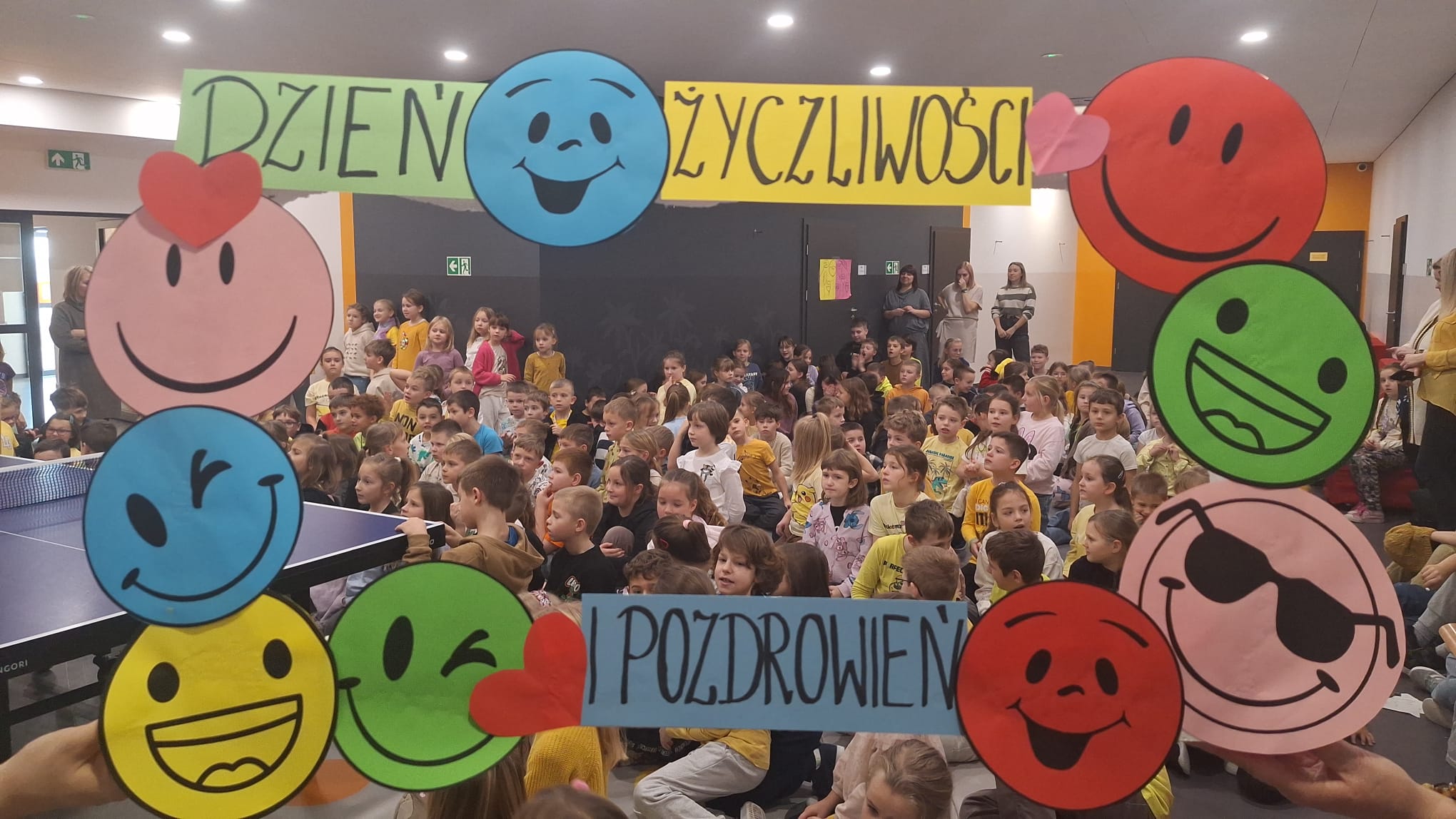 Dzień Życzliwości i Pozdrowień trwał w naszej szkole przez cały tydzień, aby zaszczepić w nas wszystkich te piękne, ponadczasowe wartości. W tym czasie: -działała Skrzyneczka z dobrymi słowami, -mogliśmy podziwiać wystawę prac plastycznych klas 5–8, -odbył się apel i wybór Króla Życzliwości dla klas 1–4, -Samorząd Uczniowski rozdawał karteczki z dobrymi słowami, a na koniec wykonaliśmy wspólne, pełne uśmiechu zdjęcie. Dziękujemy za wsparcie p. Joli F. oraz p. Konserwatorowi Zenkowi.