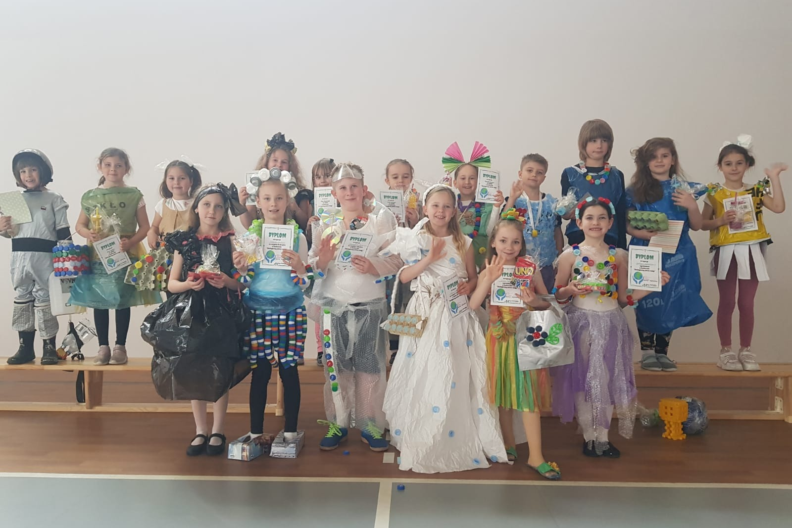 Dzieci prezentowały stroje, które wykonały wspólnie z rodzicami w domu. Uczniowie przygotowali swoje stroje z odpadów, którym nadali drugie życie. Stroje powstały z różnorodnych materiałów przeznaczonych do recyklingu np. kartony, worki, gazety, butelki plastikowe, folia spożywcza. Ciekawymi dodatkami były nakrycia głowy, torebki, biżuteria, buty z surowców wtórnych, sprzęt astronauty, a nawet instrumenty muzyczne! Wszystkie stroje wyróżniały się oryginalnością, pomysłowością oraz dbałością wykonania w najmniejszym szczególe. Dzieci prezentowały swoje stroje przy dźwiękach muzyki, czując się jak na prawdziwym wybiegu.
