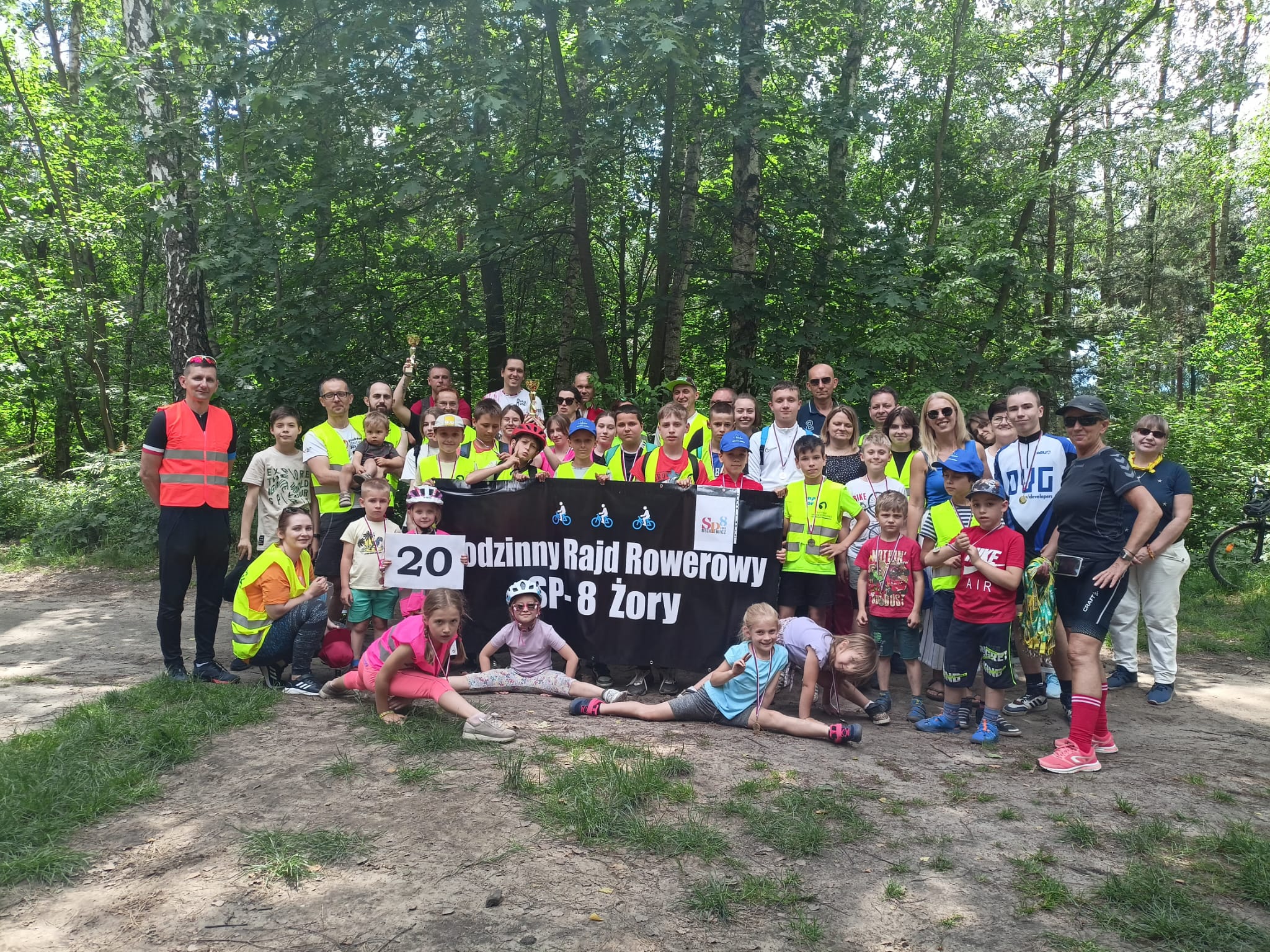 20 Jubileuszowy Rodzinny Rajd Rowerowy SP-8 Żory przeszedł do historii. W rajdzie uczestniczyło 55 miłośników kolarstwa. Przejechaliśmy ok.25km, zjedliśmy pyszności na pikniku z ogniskiem: Każdy otrzymał pamiątkowy medal. Było również losowanie nagród. Puchar dla „Najliczniejszej Rodziny” otrzymali p. Góreccy. Puchar dla „Najliczniejszej Klasy” otrzymali Uczniowie kl.5a. Dziękujemy naszym HOJNYM OFIARODAWCOM: Emilii Kristof- Firma Rodzinna, Sponsor Anonimowy, Pizzeria Ludowa – Żory, Aquarion Żory, Miasto Żory, MOSiR Żory, Ilmmar Sport. Dziękujemy za udział w rajdach przez całe 20 lat, a naszym DOBRODZIEJOM za 20 letnie wsparcie. Zapraszamy do Galerii.