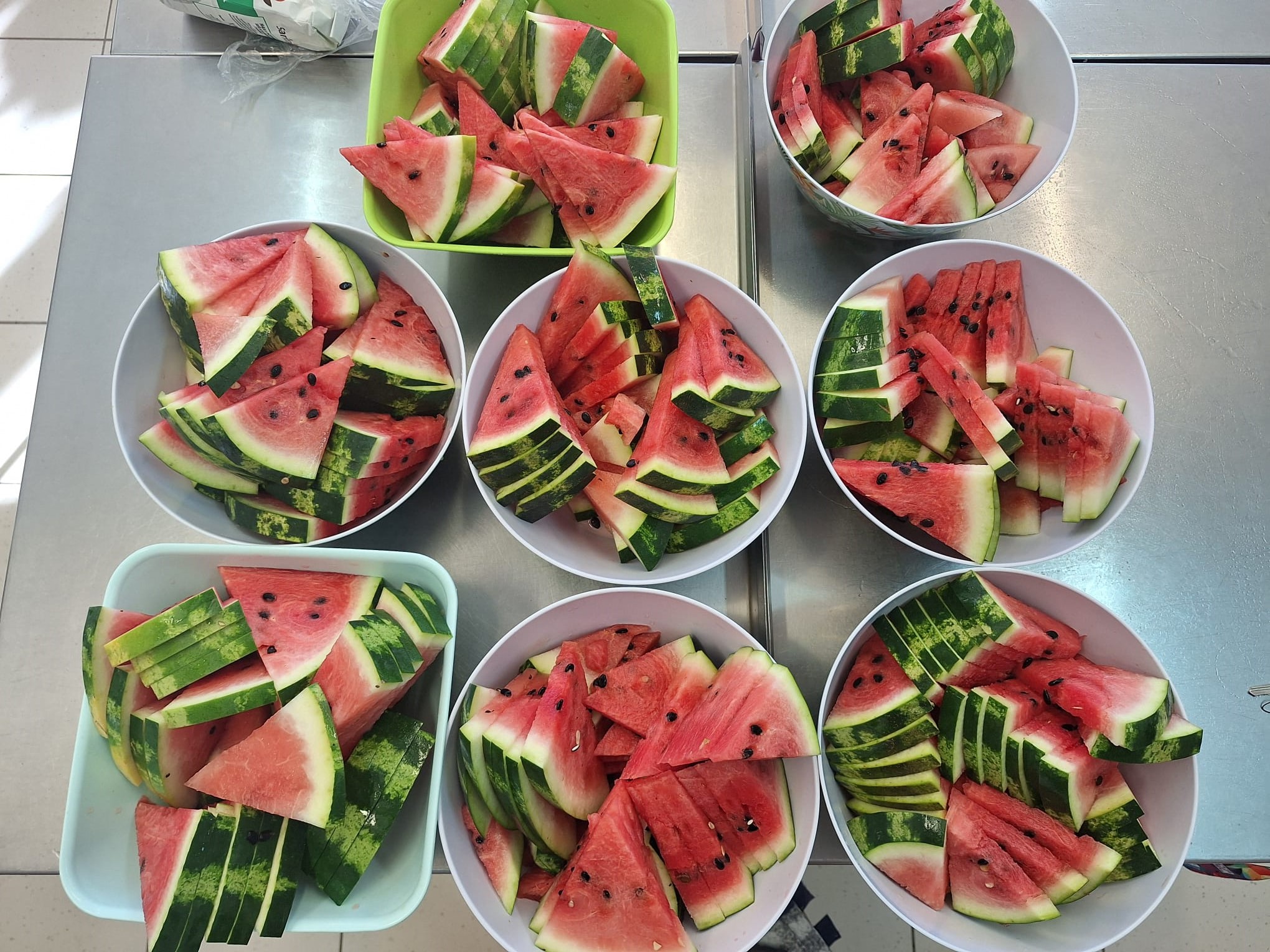 Na zdjęciu: arbuzy w miskach przygotowane na podwieczorek dla przedszkolaków.