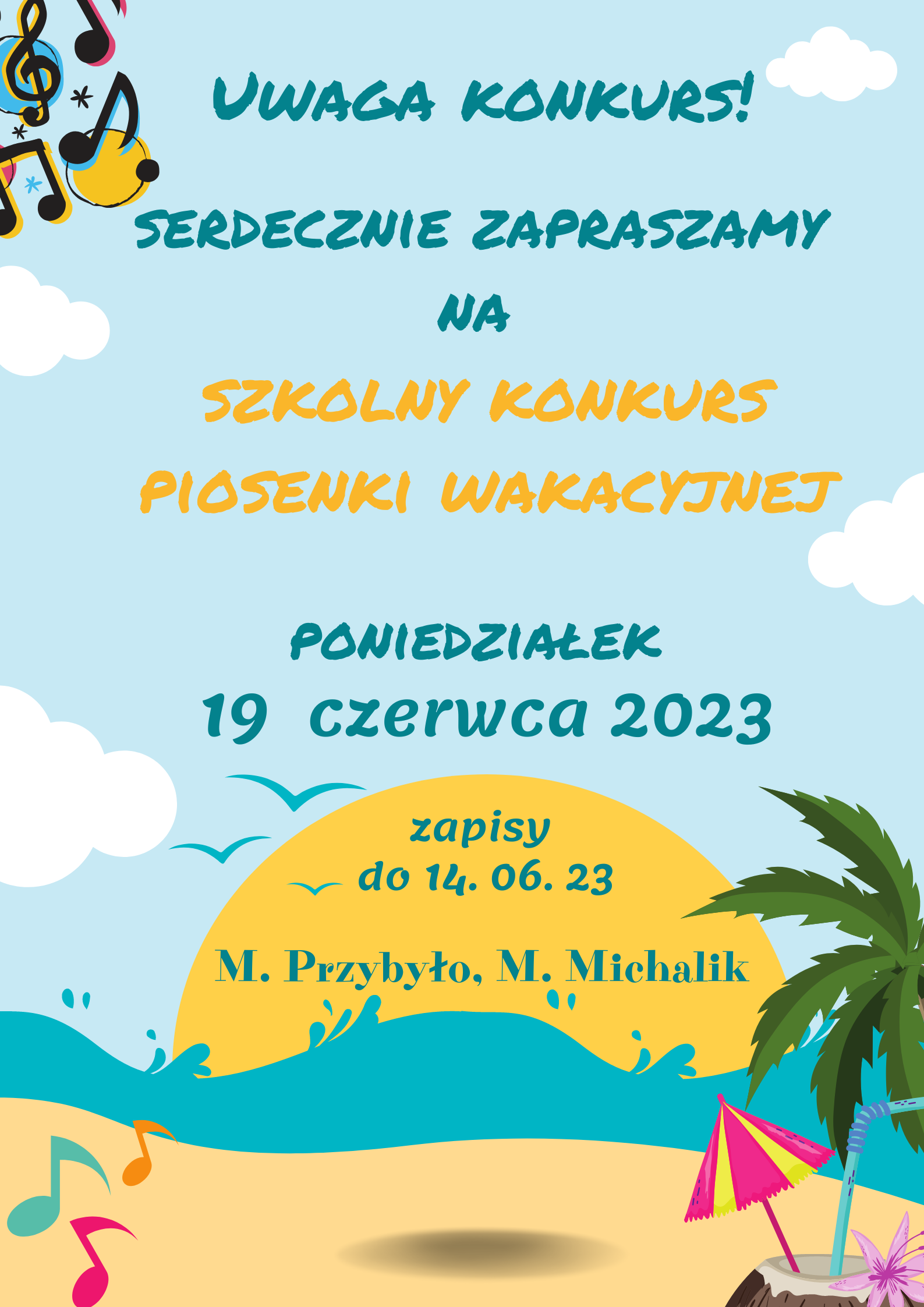 Uwaga, konkurs Posted on 15 maja 2023 by szkola8zory Posted in Bez kategorii REGULAMIN-SZKOLNEGO-KONKURSU-PIOSENKI-WAKACYJNEJ-Pobierz M. Michalik, M. Przybyło