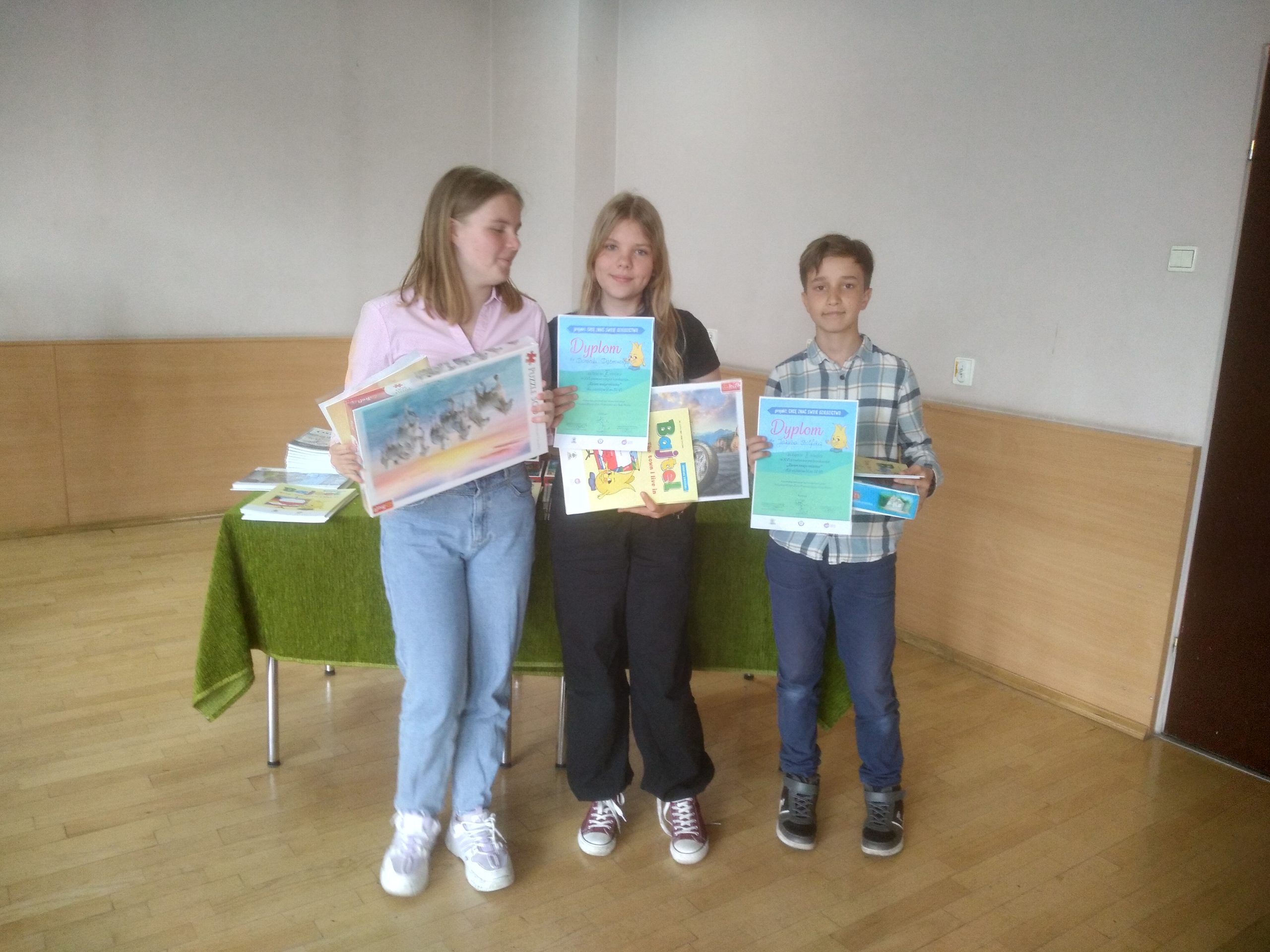 26 maja uczniowie naszej szkoły: Paulina z kl. 5b, Dominika i Kuba z kl. 6a wzięli udział w Konkursie miejskim „Znam moje miasto”. Zdobyliśmy 2 miejsce na osiem startujących drużyn.
