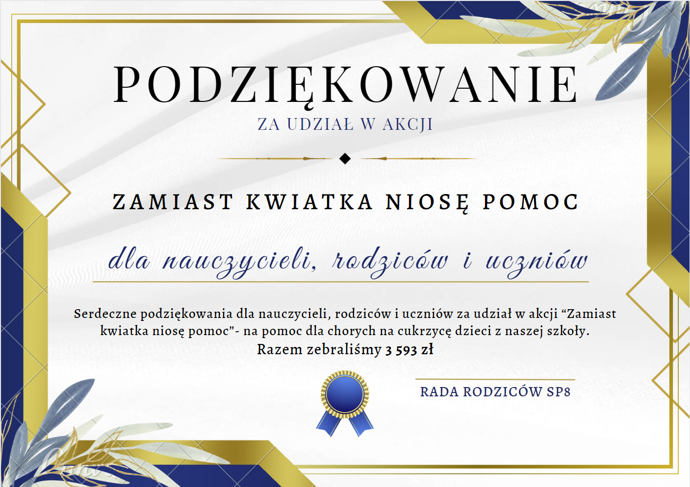 Zamiast kwiatka niosę pomoc – podziękowanie
