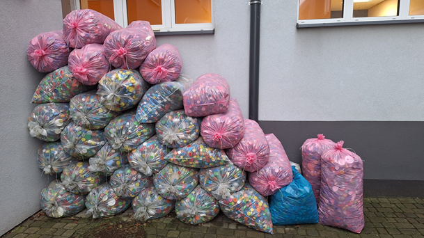 Dziękujemy wszystkim uczniom i rodzicom za zaangażowanie w zbiórkę nakrętek. Wspólnie udało się zebrać 600 kg! Otrzymaną kwotę 460,00 zł przekażemy Drużynie A. W punkcie skupu otrzymaliśmy informację, że nakrętki w dalszym ciągu będą odbierane. W związku z tym nasza zbiórka dalej trwa.