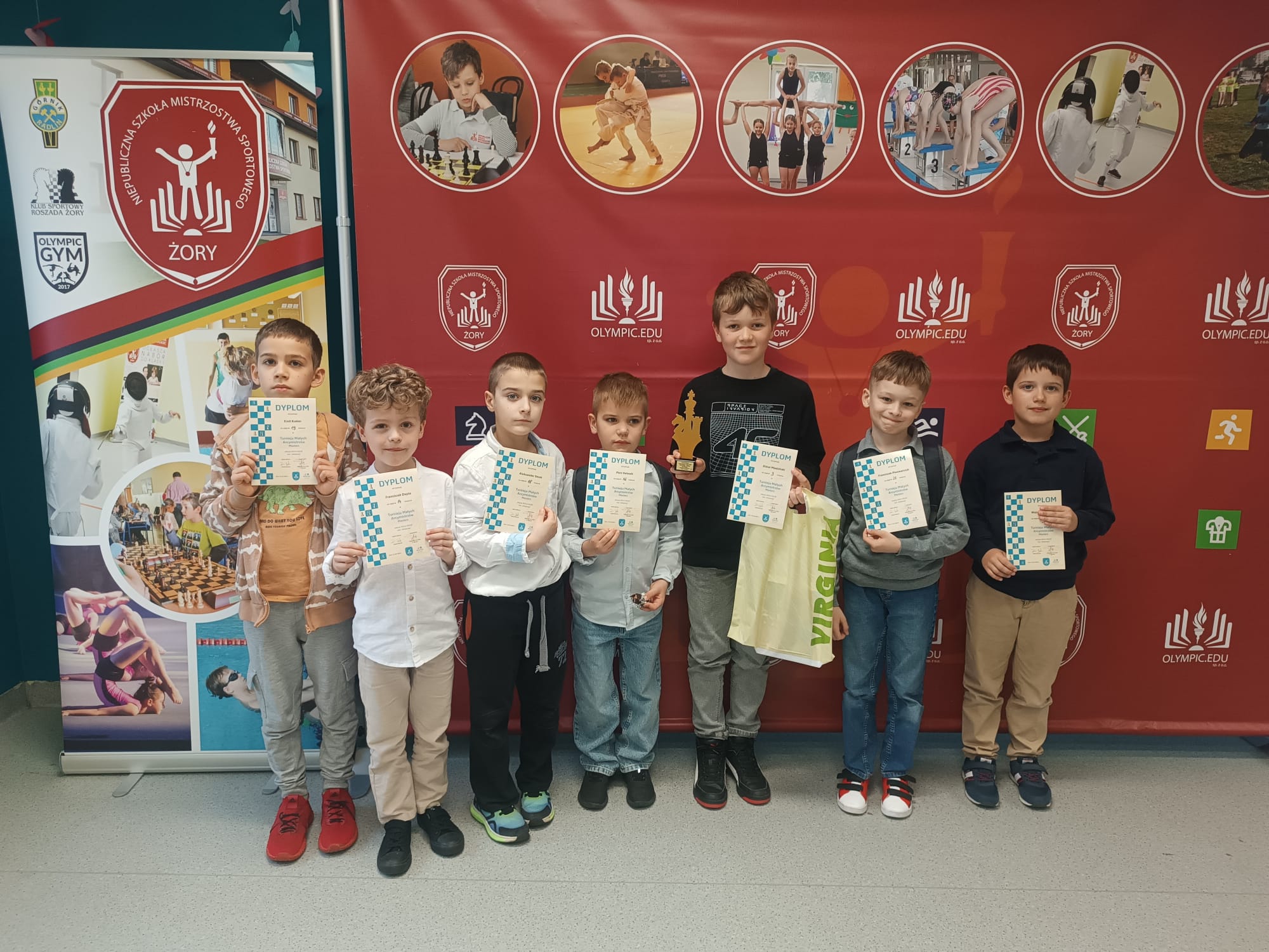 7 najlepszych naszych szachistów z klas 1-3 brało dziś udział w finale Turnieju Małych Arcymistrzów Szachowych. Jeden z naszych uczniów – Oskar M. z 3a zdobył tam statuetkę za 3. miejsce (mając tyle samo zwycięstw, co gracze z 1 i 2 miejsca czyli 6/7pkt). Serdeczne gratulacje!