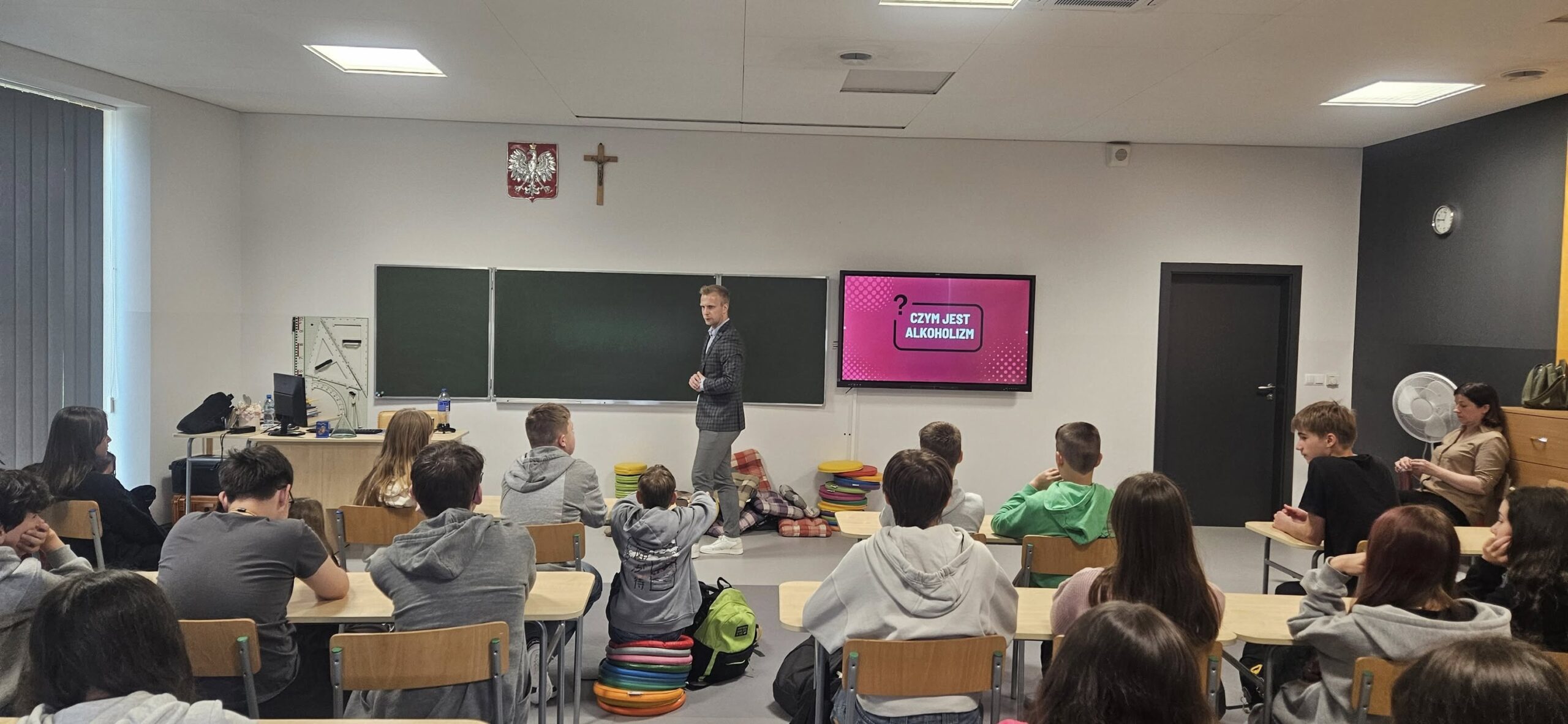 Przedwczoraj w naszej szkole odbyły się warsztaty dla uczniów klas 4-8 oraz rodziców i nauczycieli pt.: „Powiedz NIE! Wygraj życie.” Warsztaty prowadził p.Jan Boniowski. Była to jedna z ważniejszych lekcji w tym roku, nie tylko dla młodych ludzi, ale również dla nas dorosłych Poruszone zostały bowiem kwestie, które mogą zmienić bieg czyjegoś życia – szkodliwość alkoholu, narkotyków i mechanizmy uzależnień. Warsztaty te, były czymś więcej niż tylko suchą teorią – były realnym wsparciem w budowaniu odporności psychicznej i umiejętności mówienia „NIE”. Cieszymy się, że mogliśmy wspólnie się spotkać i porozmawiać o zagrożeniach, które w dobie dzisiejszych czasów płyną zewsząd na młodych ludzi. Dziękujemy uczniom, rodzicom oraz nauczycielom za liczny udział w warsztatach. Niech ta lekcja z życia na długo pozostanie w naszej pamięci. Oby żadne z Nas nigdy nie musiało zakopywać swoich marzeń u progu kariery i borykać się z uzależnieniem. Warsztaty w całości zostały sfinansowane ze środków Stowarzyszenia Ósemkowa Akademia Umiejętności. Cieszymy się, że udało nam się zorganizować to wydarzenie. Wierzymy, że był to naprawdę dobrze wykorzystany czas. Dziękujemy p.Jankowi i życzymy powodzenia !