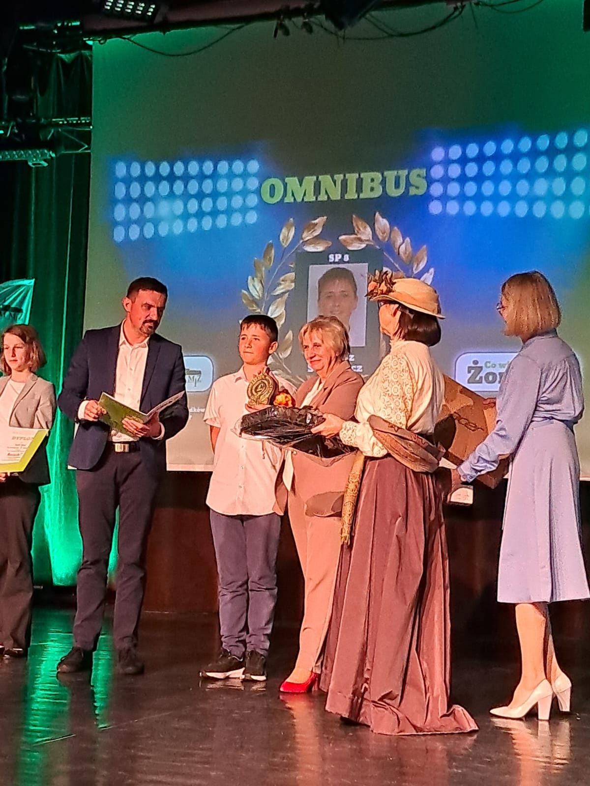44.Konkurs”Co wiesz o Żorach?” składał się z dwóch etapów.Pierwszy etap drużynowy odbył się w maju w SP nr 17.Wzięły w nim udział drużyny z żorskich szkół podstawowych.Naszą szkołę reprezentowali: Kinga Pyter, Franek Sawiński i Miłosz Starowicz.Eliminacje te wyłoniły 10 finalistów, którzy walczyli o tytuł Omnibusa już indywidualnie- 3 czerwca.Wśród nich z pierwszego miejsca do finału wszedł Miłosz. Podczas finału na scenie MOK-u przy licznie zgromadzonej publiczności Miłosz wykazał się największą wiedzą nt. naszego miasta. W ścisłym finale był bezkonkurencyjny i jako jedyny odpowiedział na wszystkie pytania i wywalczył prestiżowy tytuł ŻORSKIEGO OMNIBUSA.Za ciężką pracę- wiele miesięcy solidnej nauki otrzymał cenne nagrody: medal Omnibusa oraz laptop.Wielkie brawa!!!!