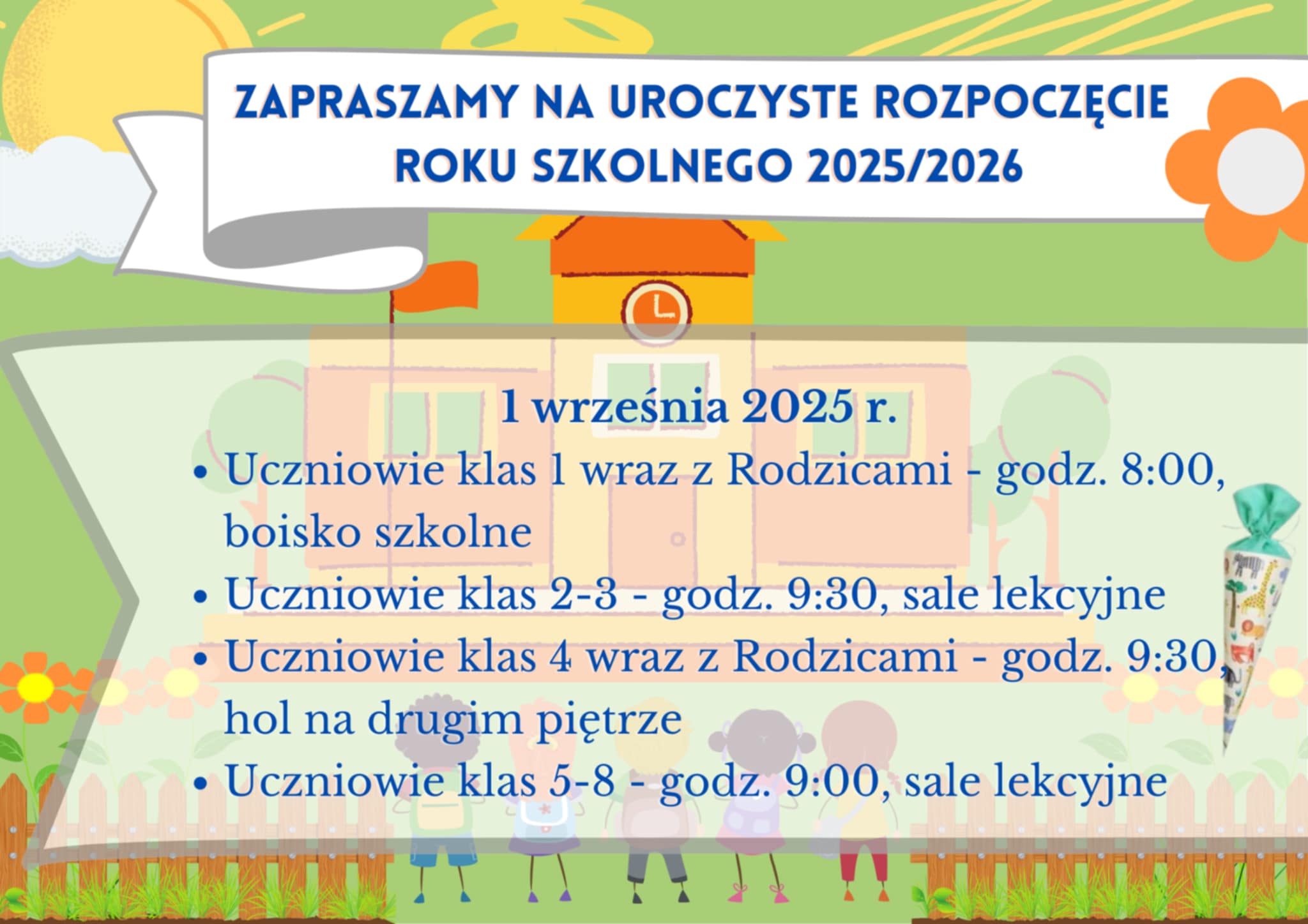 - 1.09.2025r. po rozpoczęciu roku szkolnego, można przyjść z dzieckiem do godziny 10.00 zobaczyć, jak wygląda sala świetlicy i zadać dodatkowe pytania, jeśli się takie pojawią.