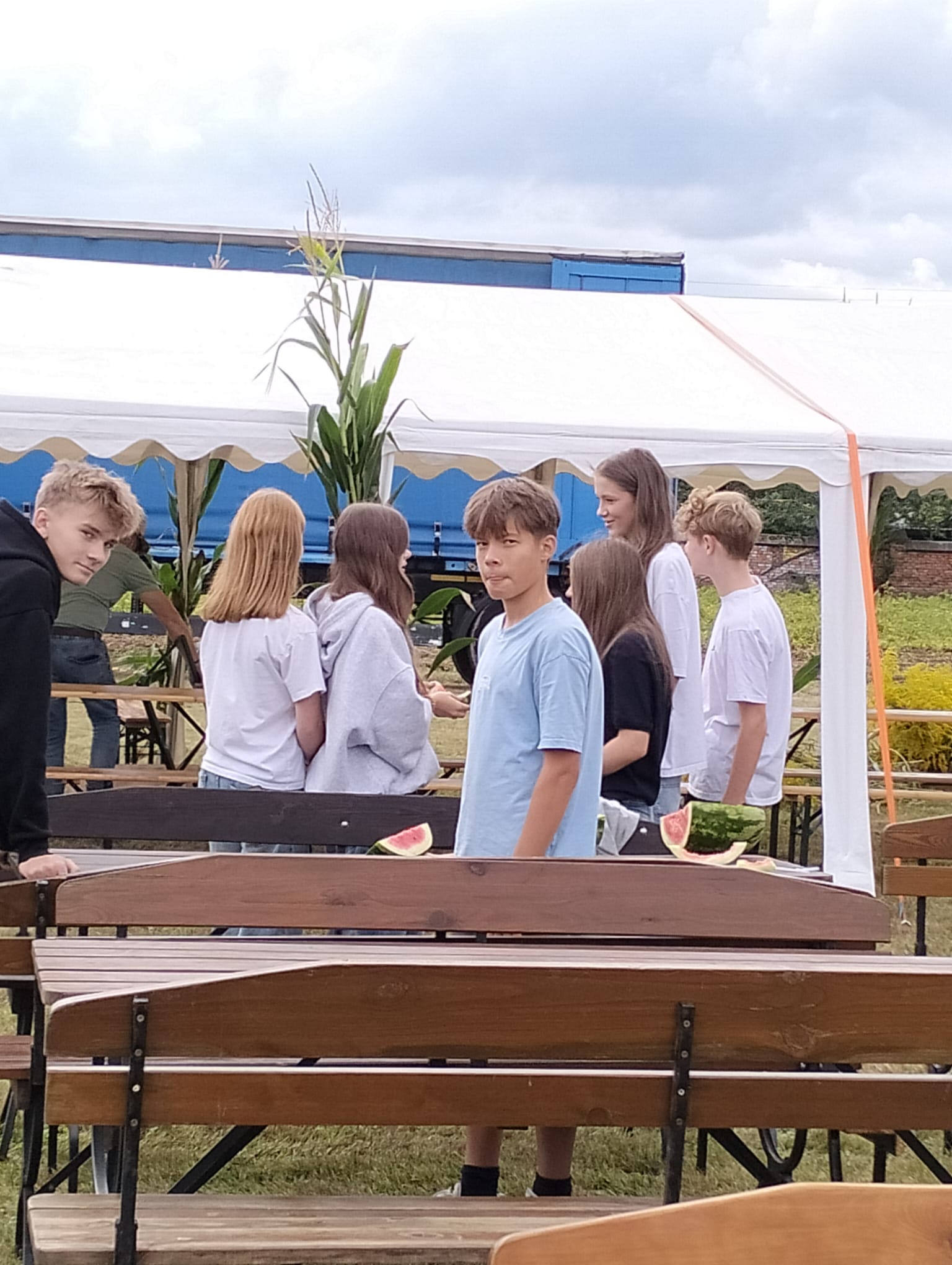 Młodzież Szkolnego Koła Wolontariatu z radością uczestniczyła w przygotowaniach do uroczystości Dożynek w naszej Dzielnicy Rogoźna