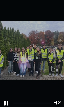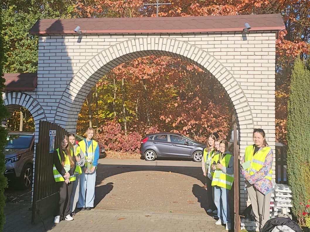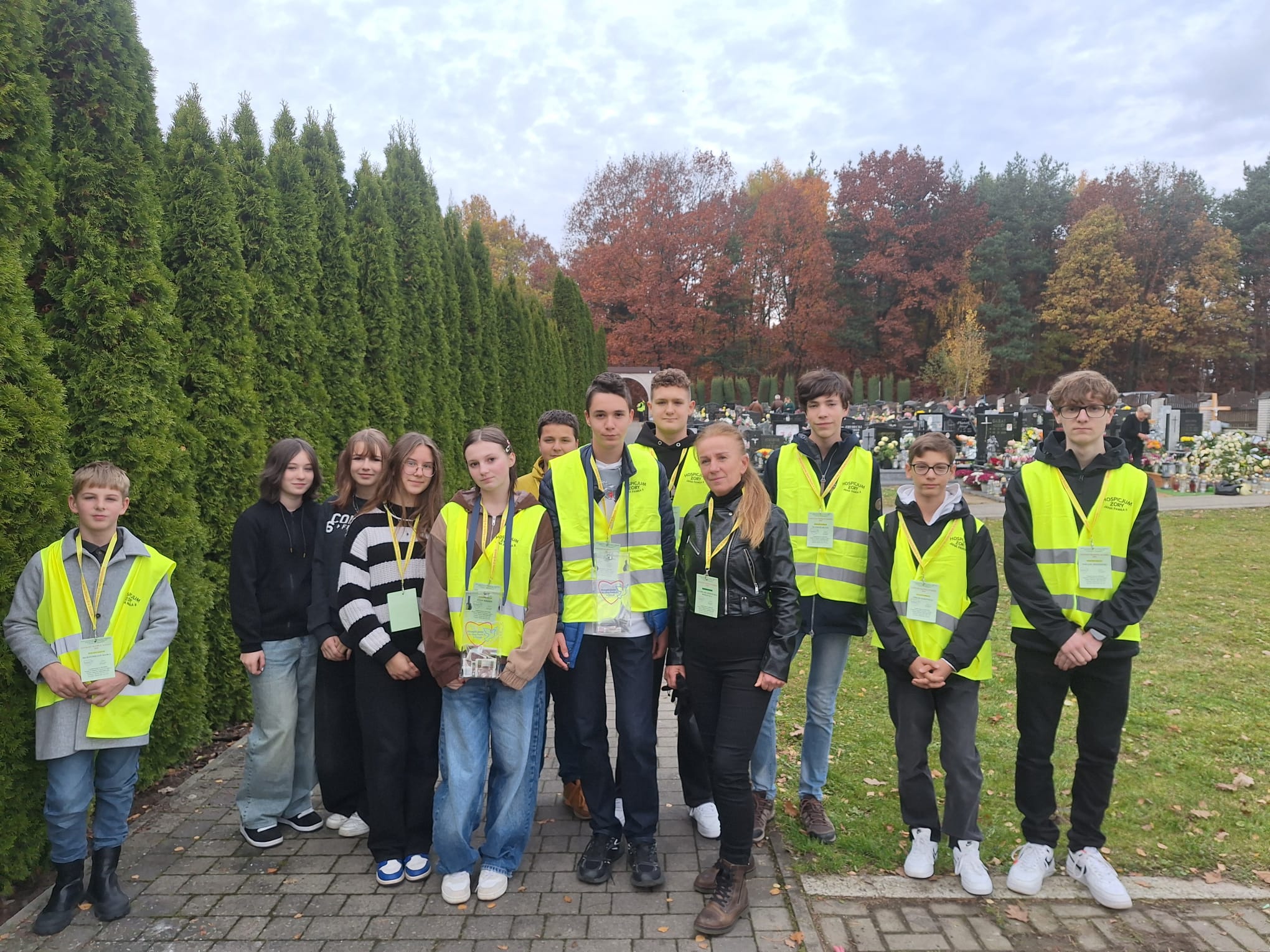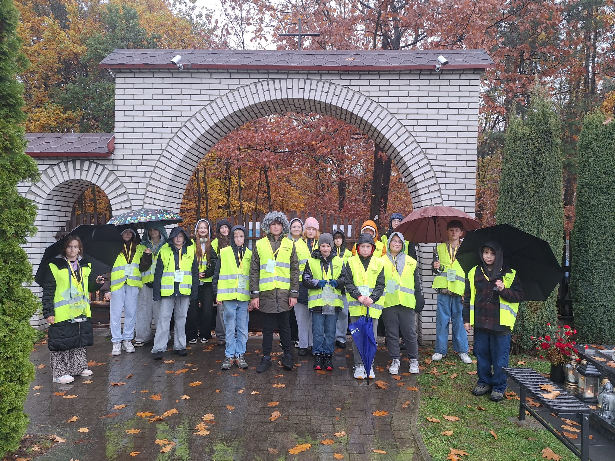 Na zdjęciach uczniowie klasy 6c wraz z p. Jagodą podczas kwestowania na Cmentarzu w Rogoźnej