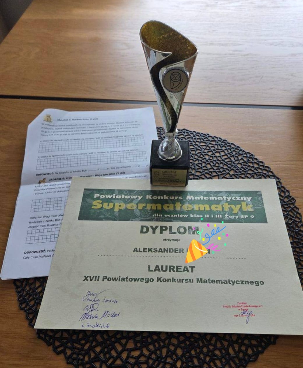 Miło nam poinformować, że uczeń naszej szkoły Aleksander, został laureatem Powiatowego Konkursu Matematycznego i uzyskał tytuł ” SUPERMATEMATYKA”.
