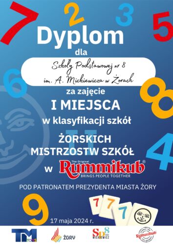 W piątek w naszej szkole odbyły się II Żorskie Mistrzostwa Szkół w RUMMIKUB pod patronatem Prezydenta Miasta Żory. Była to także okazja, aby uroczyście przyjąć Żorka – gracza Rummikub do społeczności Mickiewicza.