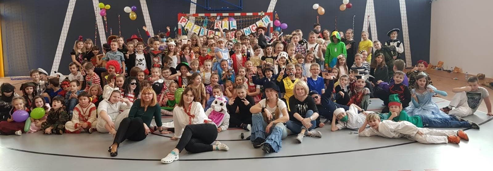 Dzięki współpracy wszystkich nauczycieli sala gimnastyczna zamieniła się w prawdziwą salę balową. Udekorowana kolorowymi łańcuchami, balonami, serpentynami, plakatami zachęcała do szampańskiej zabawy. Tego dnia dzieciom towarzyszyło wiele emocji i wrażeń. W szkole zaroiło się od Supermanów, piratów, rycerzy, kowbojów rodem z Dzikiego Zachodu, klaunów, czarodziejów… Były wróżki, księżniczki, smoki, lwy, krokodyle, motyle, biedronki i różne inne stwory i dziwadła…