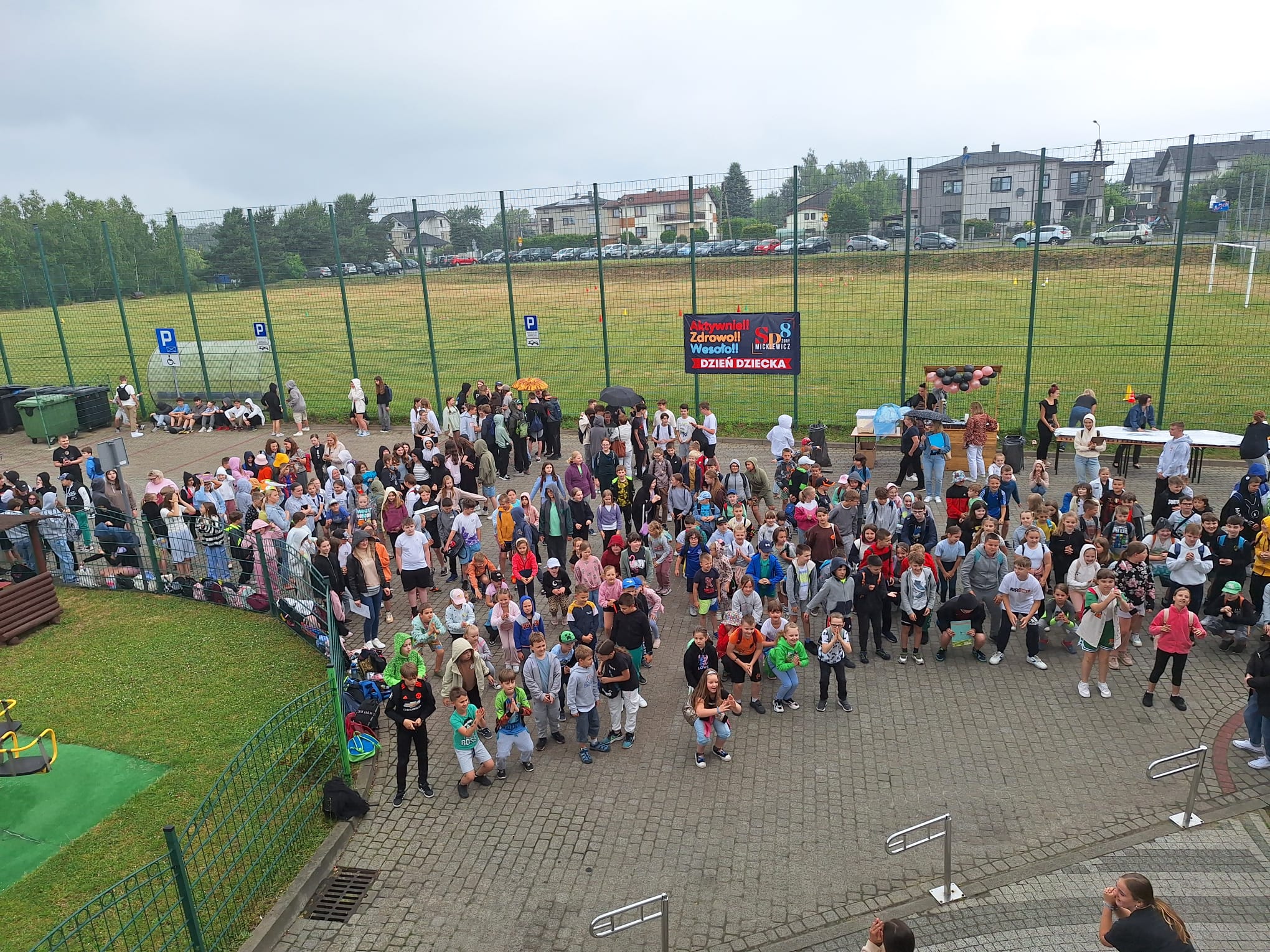 Na zdjęciu: Uczniowie naszej szkoły podczas obchodów Dnia Dziecka przed boiskiem szkolnym
