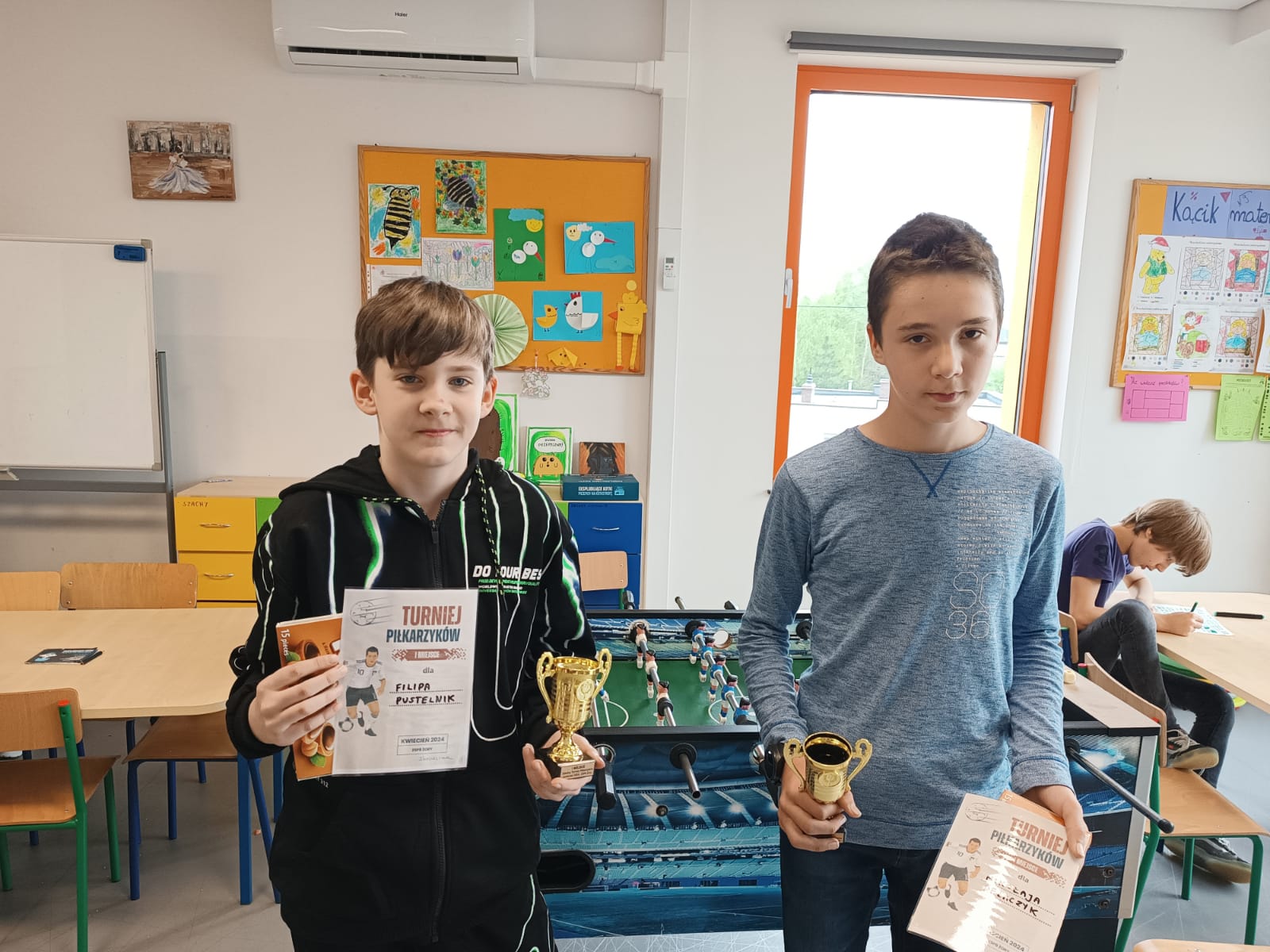 Na zdjęciu: zwycięzcy Szkolnego Turnieju Piłkarzyków: Mikołaj P. oraz Filip P. z 6B