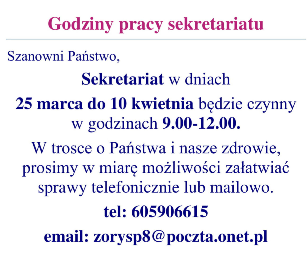 OGŁOSZENIA DLA PRACOWNIKÓW