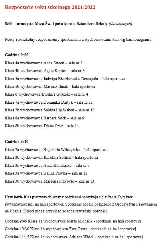 • ROZKŁAD GODZIN LEKCYJNYCH