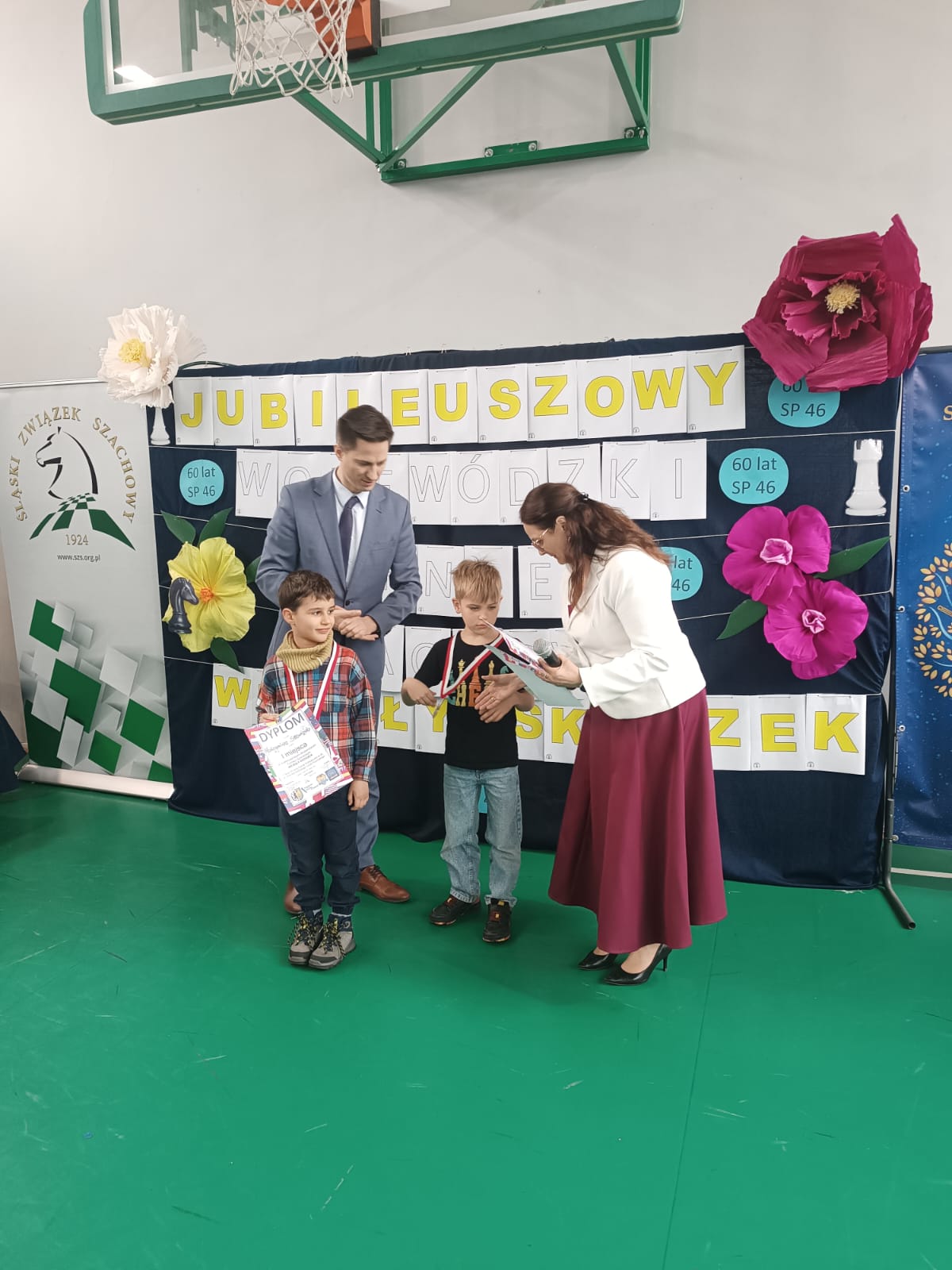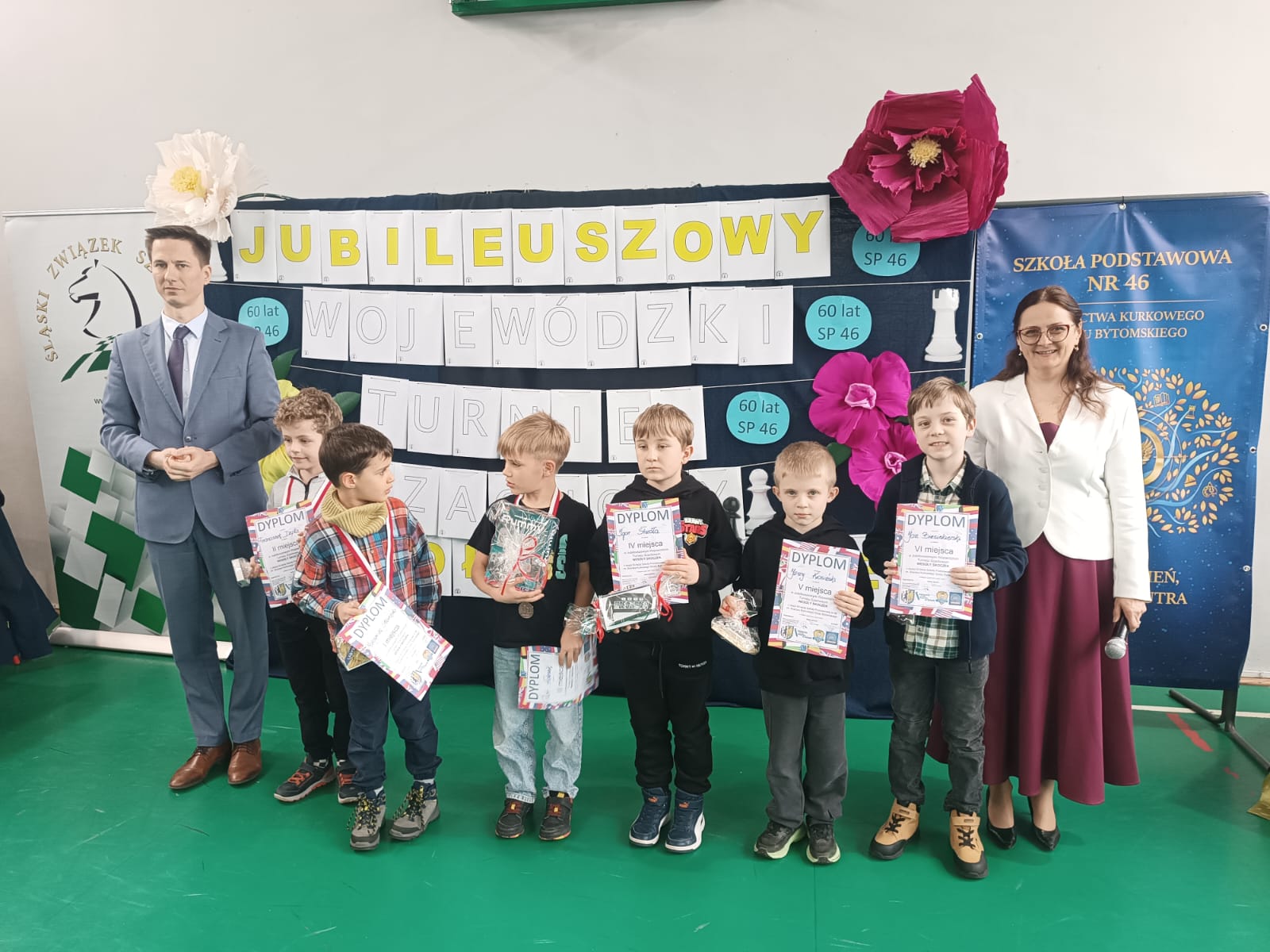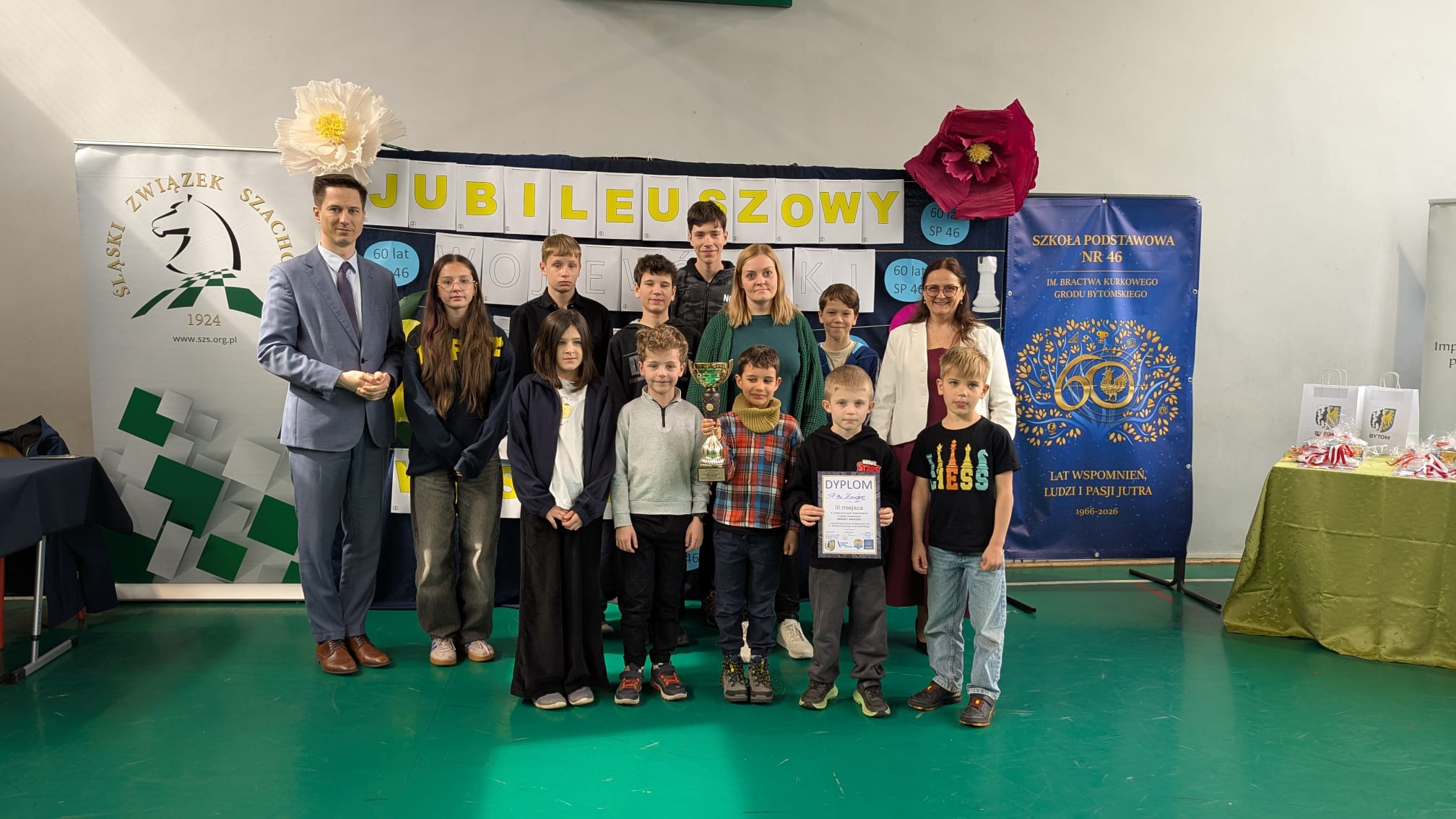31.03.2026r. 10-os. drużyna w składzie: Mateusz, Nadia, Antek, Michał, Karol (klasy 4-8) oraz Maks, Franek, Piotrek, Jerzy i Wiktoria (klasy 1-3) zagrała świetne partie szachowe zdobywając dla nas puchar! Ponadto w klasyfikacji indywidualnej troje naszych młodszych uczniów – Maks (1 miejsce), Franek (2 miejsce) i Piotrek (3 miejsce) zajęli całe podium otrzymując medale i upominki! Jerzy także został nagrodzony (5 miejsce) oraz w grupie starszej Nadia (4 miejsce wśród dziewczynek) ! Mamy naprawdę świetna reprezentację szachistów!