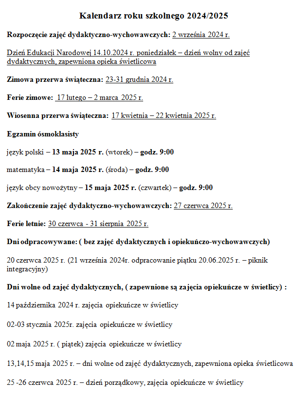 Rozpoczęcie zajęć dydaktyczno-wychowawczych: 1 września 2025 r.