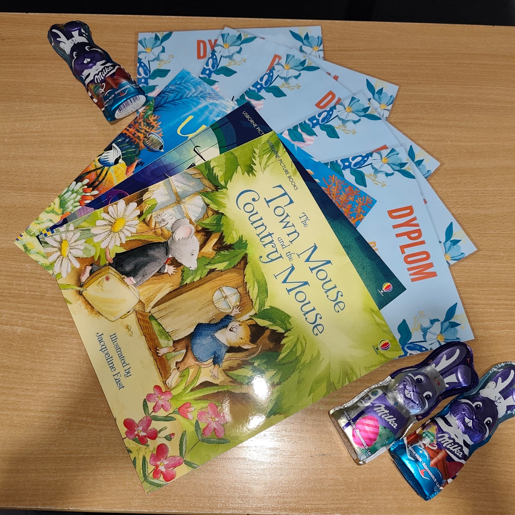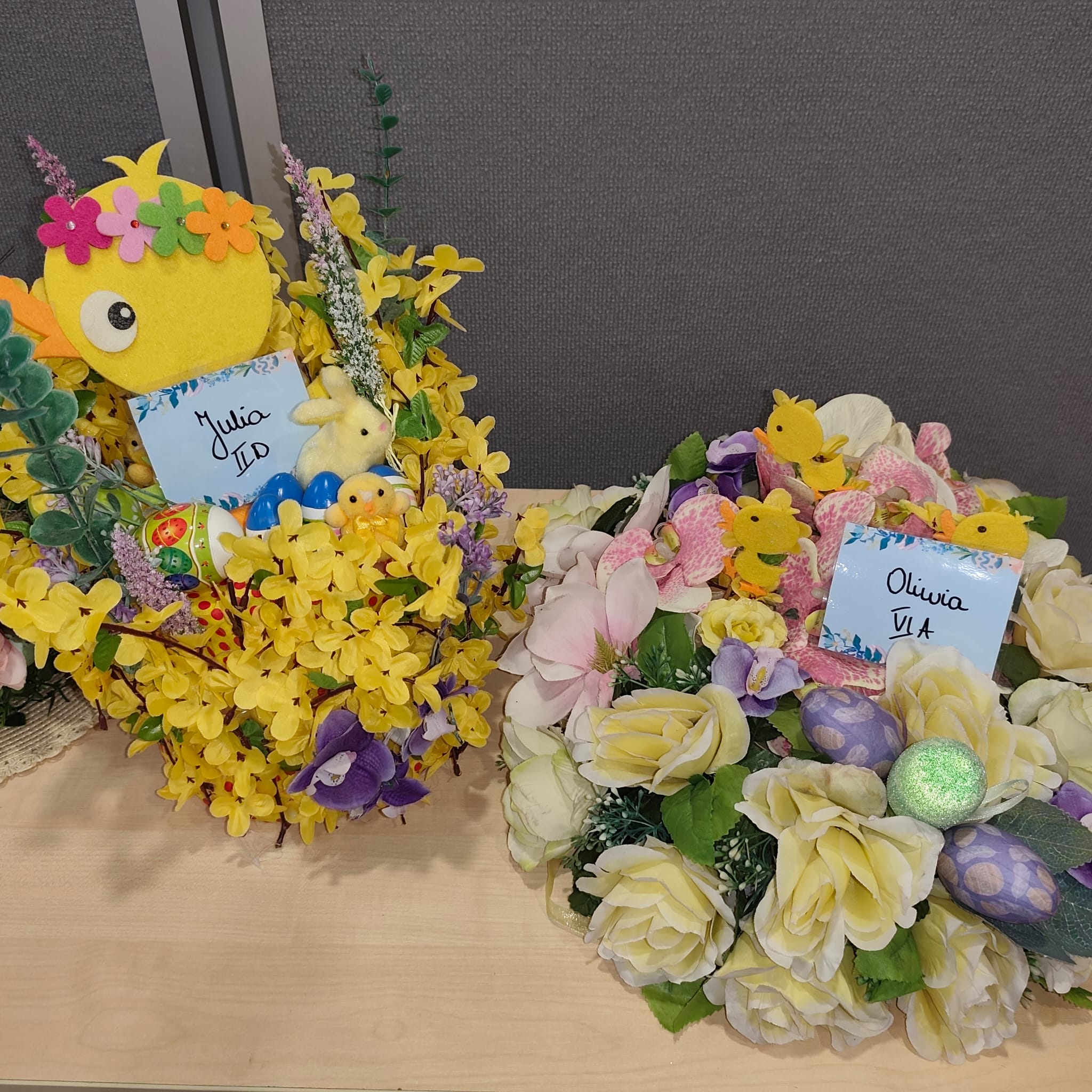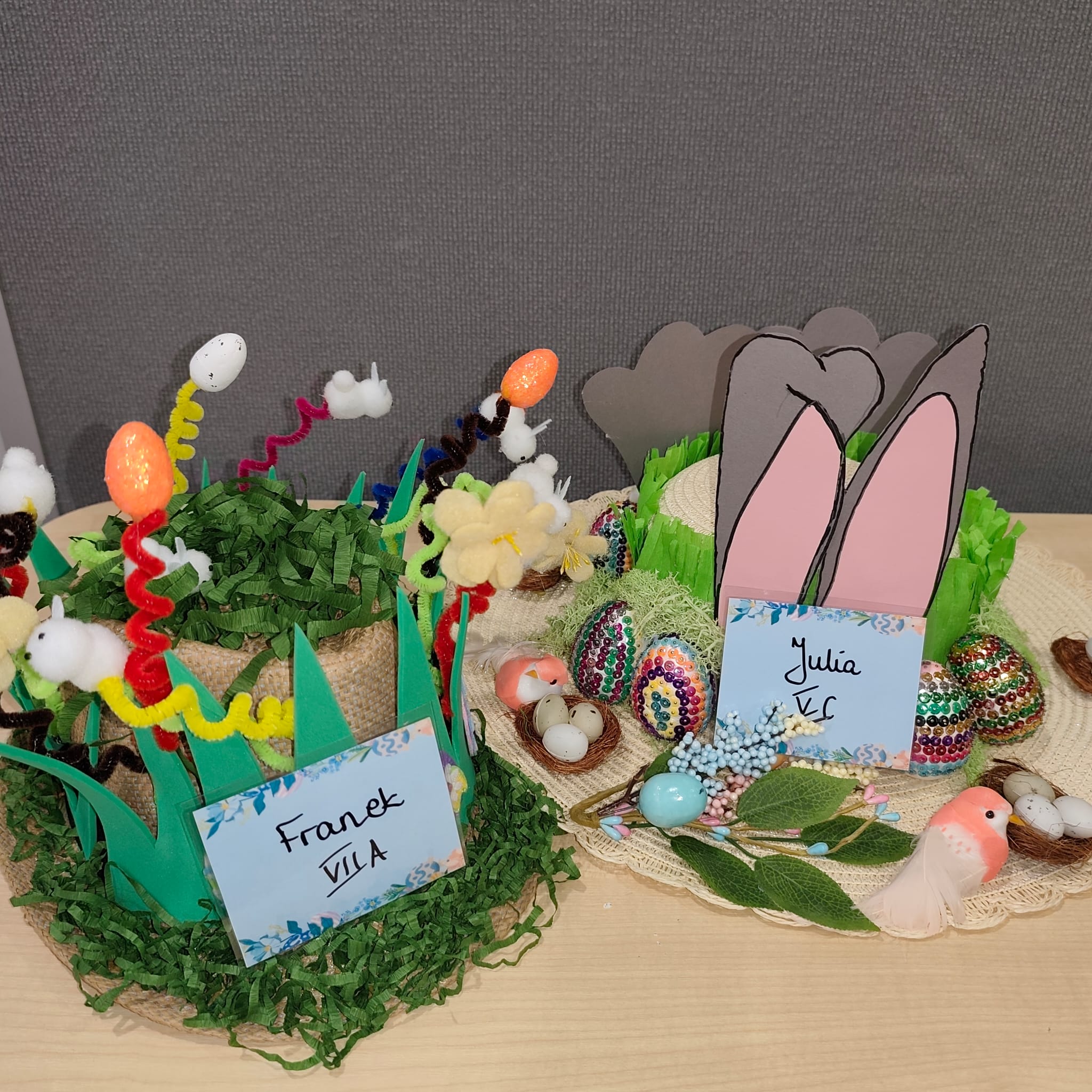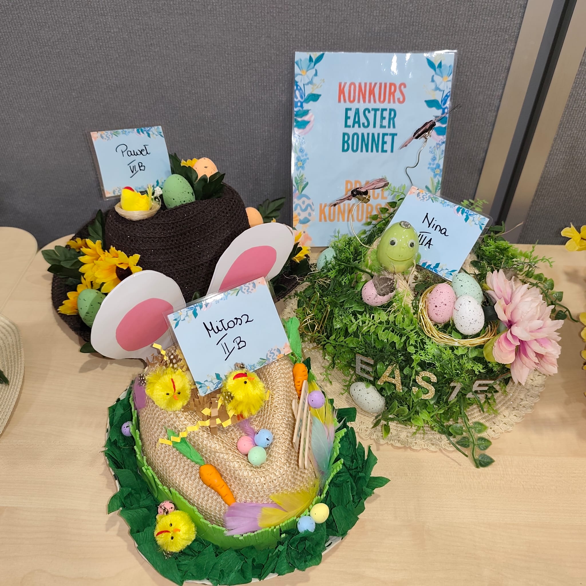 Na zdjęciach: zwycięskie prace w konkursie EASTER BONNET oraz nagrody dla uczestników