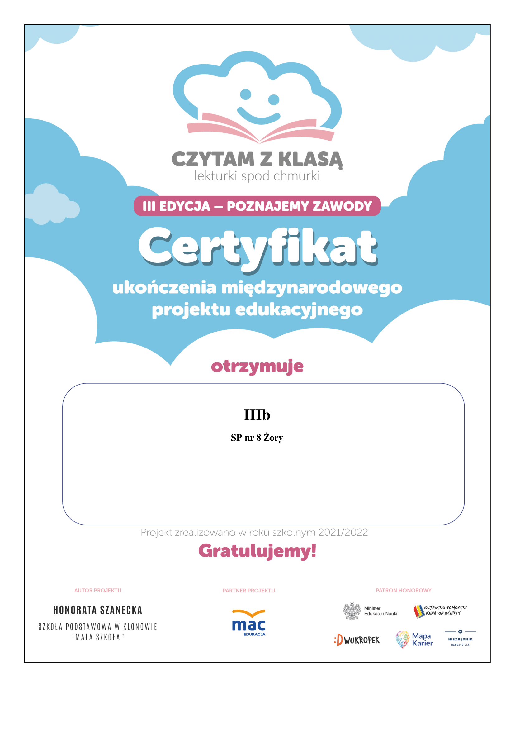 Dziękujemy za piękną czytelniczą przygodę i już teraz z niecierpliwością czekamy na kolejny rok szkolny i kolejne lekturki spod chmurki.