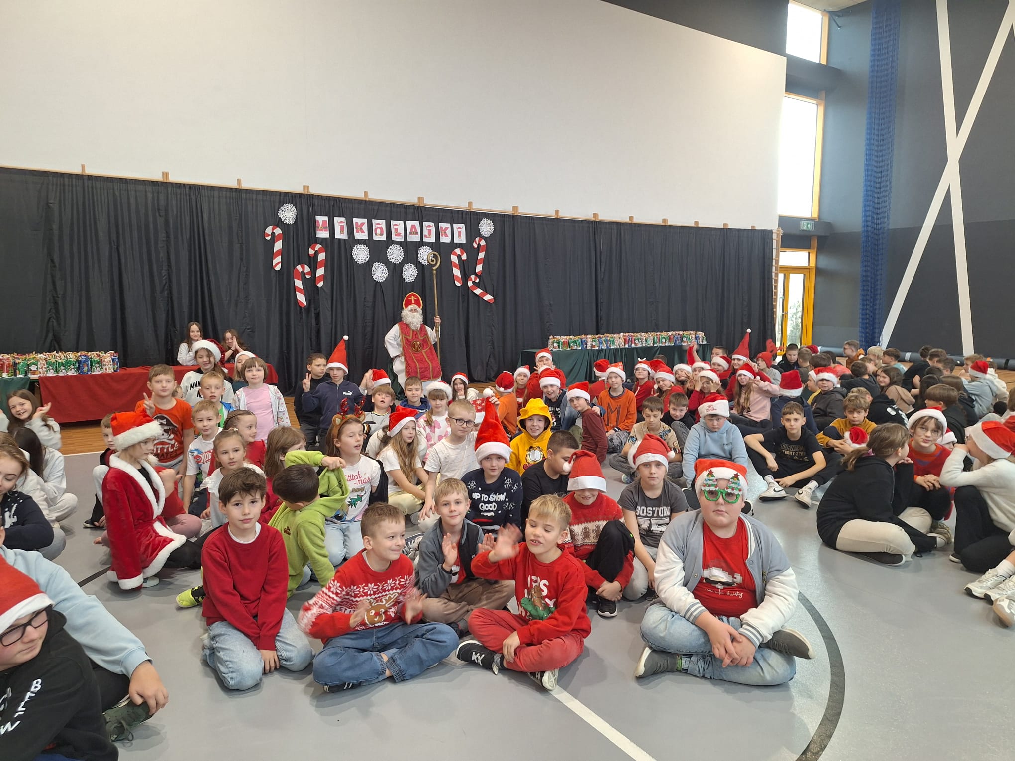 Cała szkoła – od najmłodszych po najstarszych – powitała Mikołaja z taką radością, że nawet szkolny dzwonek zadzwonił dziś jakby weselej