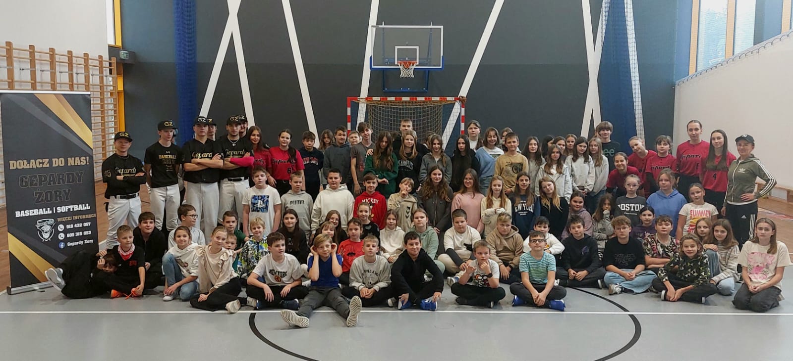 Dzisiaj mieliśmy okazję zobaczyć pokaz baseballu i softballu w wykonaniu Baseballowego Uczniowskiego Klubu Sportowego G E P A R DY Ż O R Y. To była doskonała okazja, by poznać tą niszową dyscyplinę sportową, która przyciąga uwagę i zainteresowanie. Grupa Gepardy a wśród nich nasi uczniowie: Lenka Gawlak i Mateusz Gabryś zaprezentowali się w pięknych strojach klubowych. W wydarzeniu wzięła udział cała szkoła. Widać było, że uczniowie byli zainteresowani tą dyscypliną sportową. Zapraszamy do Galerii.