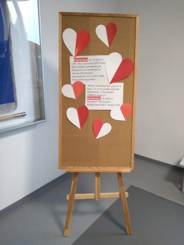 Posted on 17 listopada 2021 by szkola8zory Posted in Bez kategorii Kolejnym działaniem uczniów naszej szkoły w ramach projektu „ Gdy gaśnie pamięć ludzka dalej mówią kamienie” było przygotowanie kącika historyczno – patriotycznego.