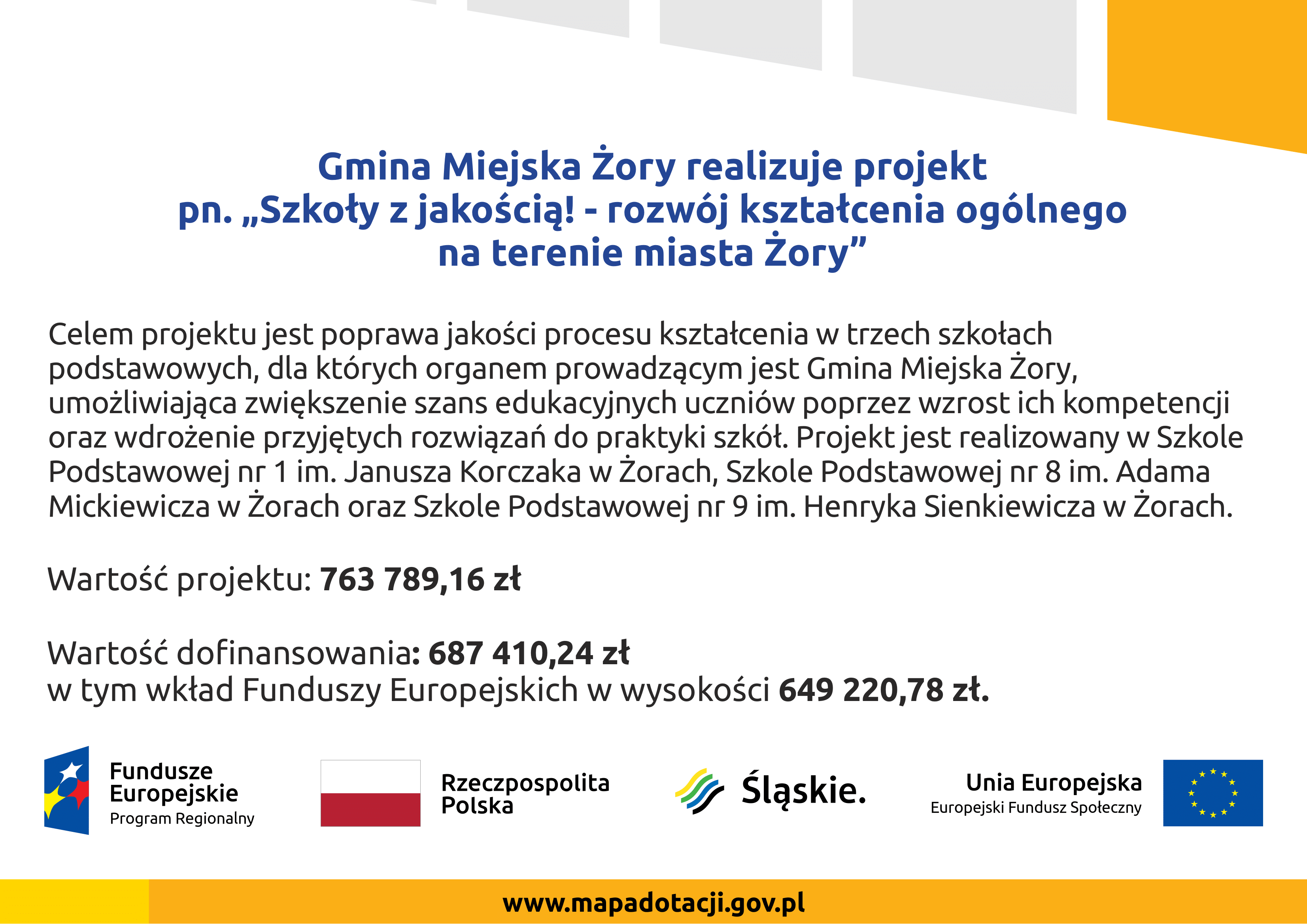 PROJEKT ,,SZKOŁY Z JAKOŚCIĄ – ROZWÓJ KSZTAŁCENIA OGÓLNEGO NA TERENIE MIASTA ŻORY” PROJEKT-SZKOLY-Z-JAKOSCIAPobierz REGULAMIN -BOIPobierz FORMULARZ_REKRUTACYJNY_-_UCZEN-1Pobierz 2.1__zal._Deklaracja_uczestnictwa_w_projekcie-_uczen_niepelnoletniPobierz 3_zal._oswiadczenia_uczestnika_aktualnePobierz ZAJECIA-Z-PROJEKTUPobierz