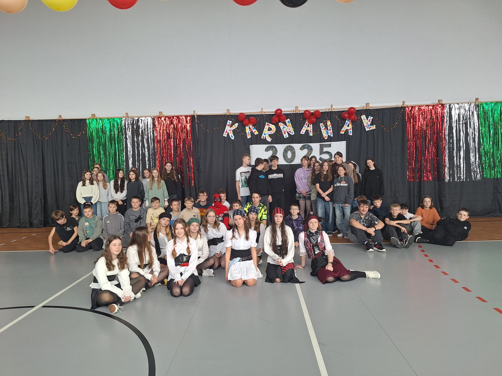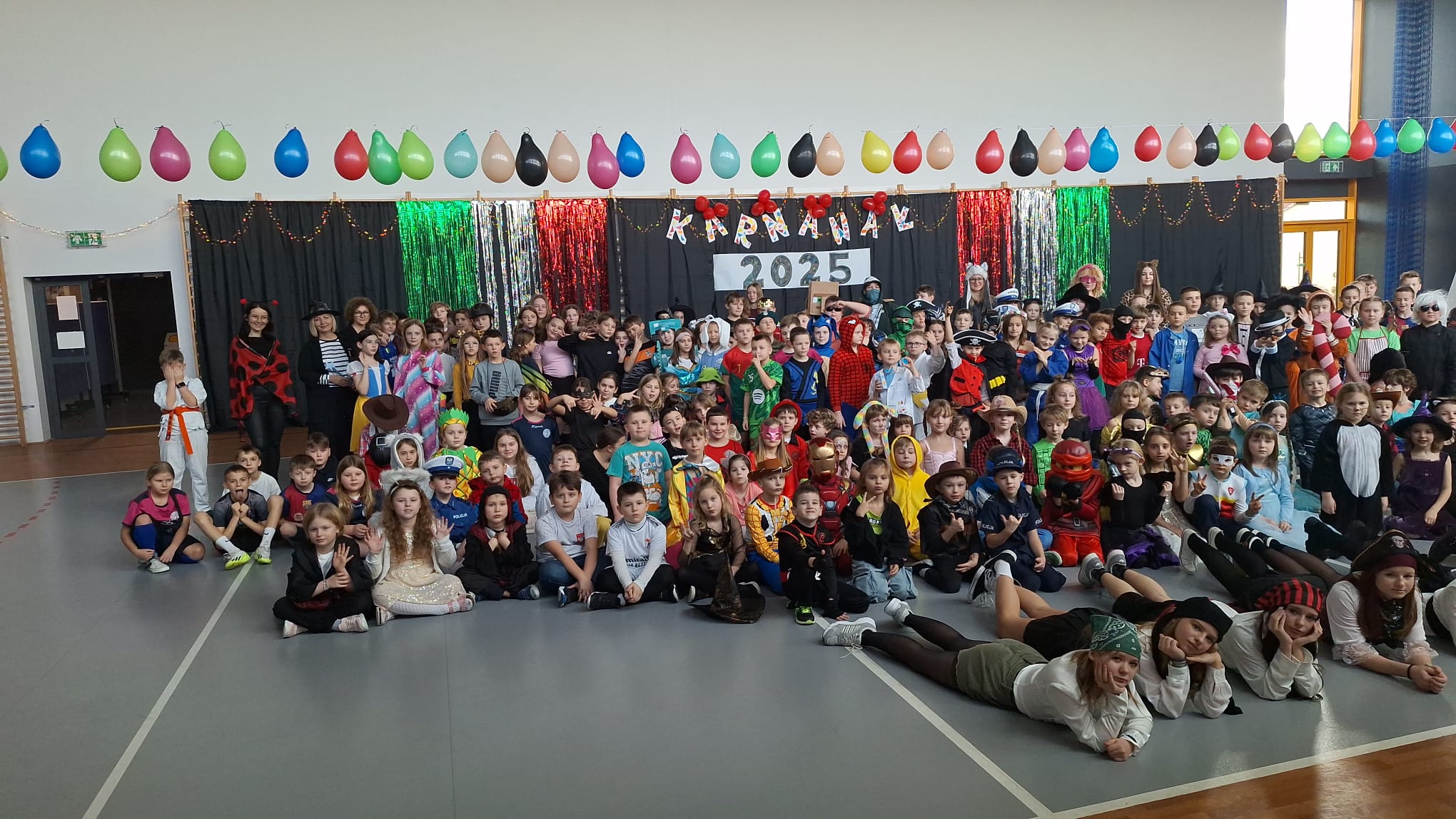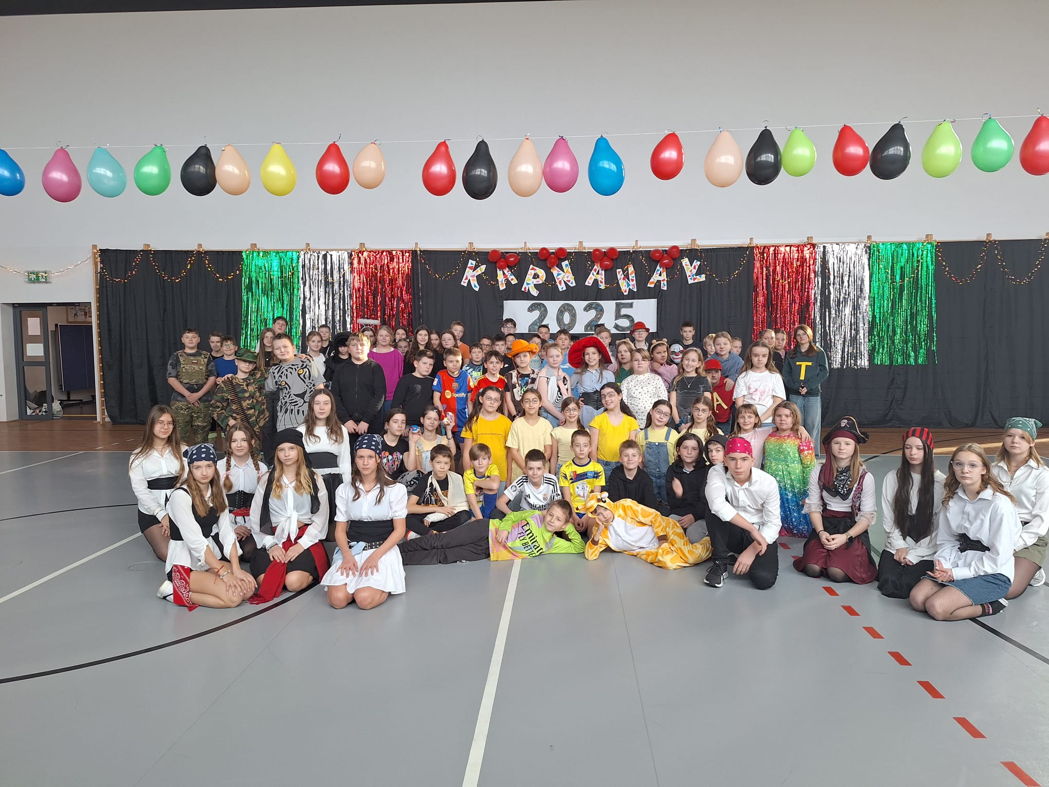 ● Kolorowa sceneria pełna balonów, światełek i dekoracji karnawałowych zamieniła salę gimnastyczną w salę balową.