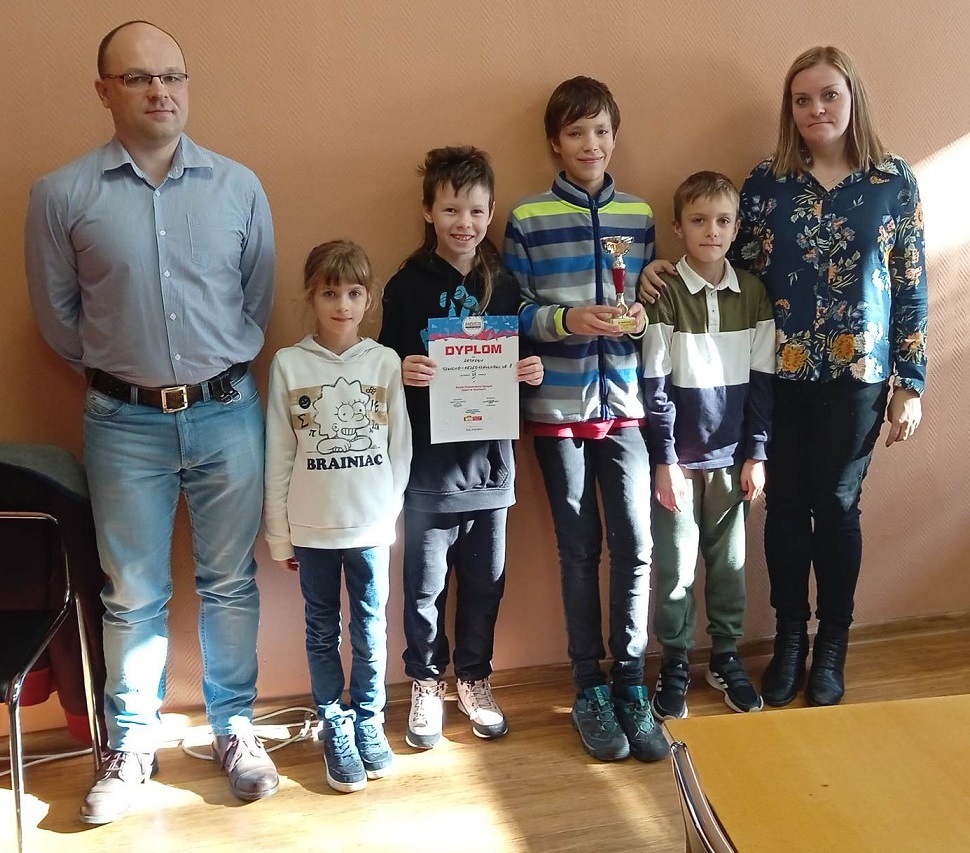 W październiku uczniowie naszej szkoły wzięli udział w powiatowych drużynowych Igrzyskach Szachowych. W dniu 21.10.2022 odbyły się rozgrywki w grupie starszej (klasy 7-8), w których naszą szkołę reprezentowało czterech uczniów z 8b – Nataniel K., Szymon J., Olivier W. oraz Amelia P., natomiast 27.10.2022 odbyły się Igrzyska Dzieci (dla uczniów klas 1-6), w których nasi uczniowie odnieśli wielki sukces, zdobywając puchar za 3. miejsce w starciu z 9 innymi żorskimi szkołami! Naszą szkołę w grupie młodszej reprezentowali Mateusz K. z 5B, Bartek B. z 2B, Jan F. z 5A oraz Marysia G. z 2A. Uczniowie rozgrywając aż 9 rund szachowych, wykazali się na prawdę świetnym poziomem – dużym zaskoczeniem dla wszystkich była Marysia, która mimo że była jedną z najmłodszych uczestniczek, pokonała aż 7 na 9 rywalek – najlepszych dziewcząt z żorskich szkół. Wszystkim uczniom, biorącym udział w turniejach serdecznie gratuluję i już przygotowuję dodatkowe miejsce na puchary szkolne 🙂