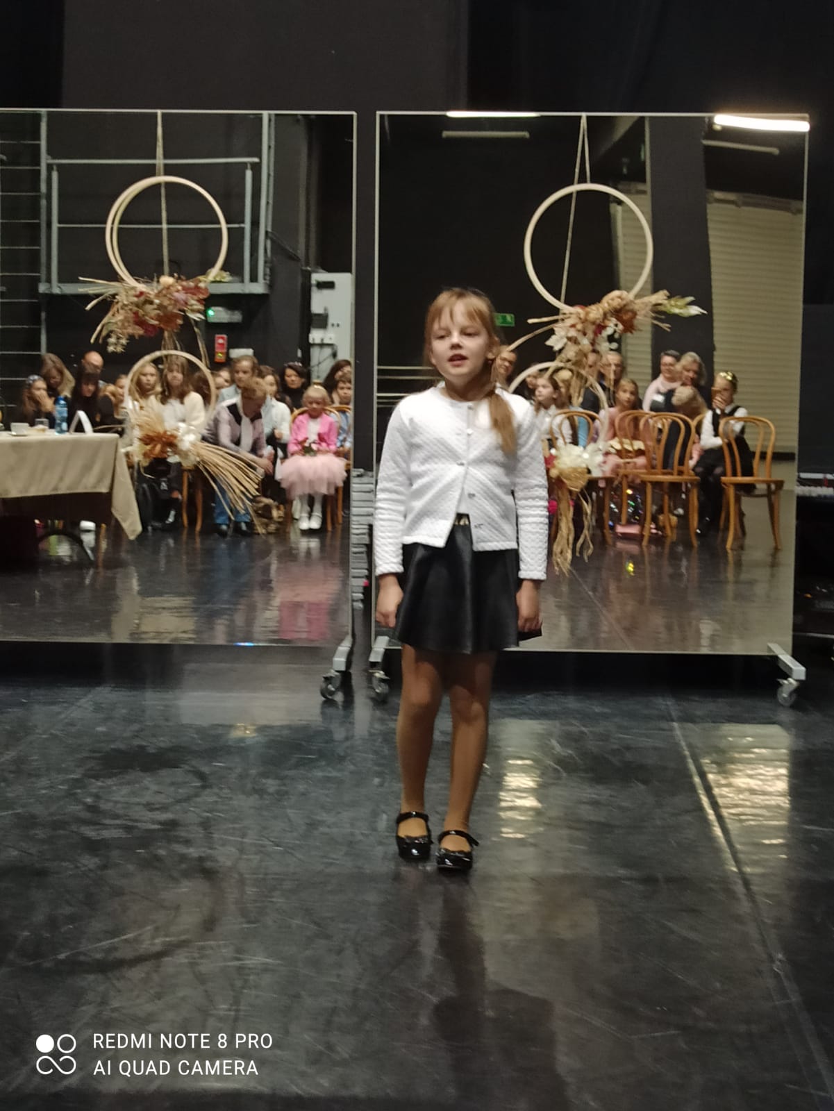 Na zdjeciu: uczennica KInga P. – zdobywczyni wyróżnienia podczas Jesiennych Spotkań Artystycznych Ballo, trzymająca dyplom