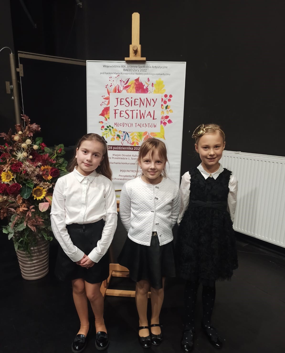 W miniony piątek w Miejskim Ośrodku Kultury odbyły się Wojewódzkie XIX Jesienne Spotkania Artystyczne Ballo – ŻORY 2022 – Jesienny Festiwal Młodych Talentów pod hasłem Maria Konopnicka i twórcy polskiego romantyzmu. W konkursie tym brali udział uczniowie naszej szkoły – Kinga P. z klasy 4b, Kinga M. z klasy 3a oraz Helenka M. z klasy 2b. Zadaniem uczestników było przedstawienie utworu Marii Konopnickiej i nasze reprezentantki wywiązały się z tego zadania znakomicie, tym bardziej, że konkurencja była liczna, a poziom recytacji wysoki.