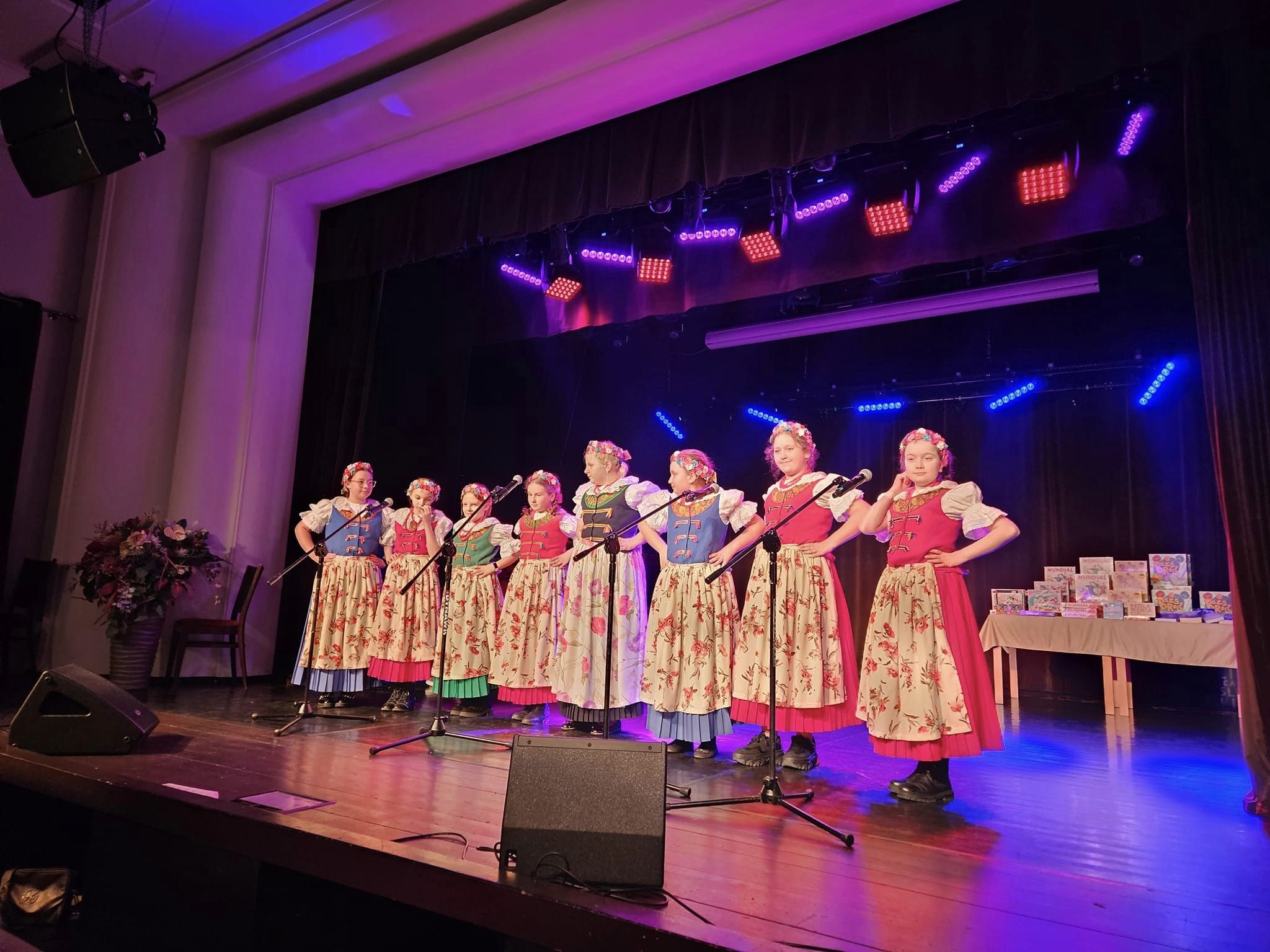 Na zdjęciu: Zespół Rogoźna Folk z dyplomami za zwycięstwo w konkursie Pieśniczek i Przyśpiewek Śląskich
