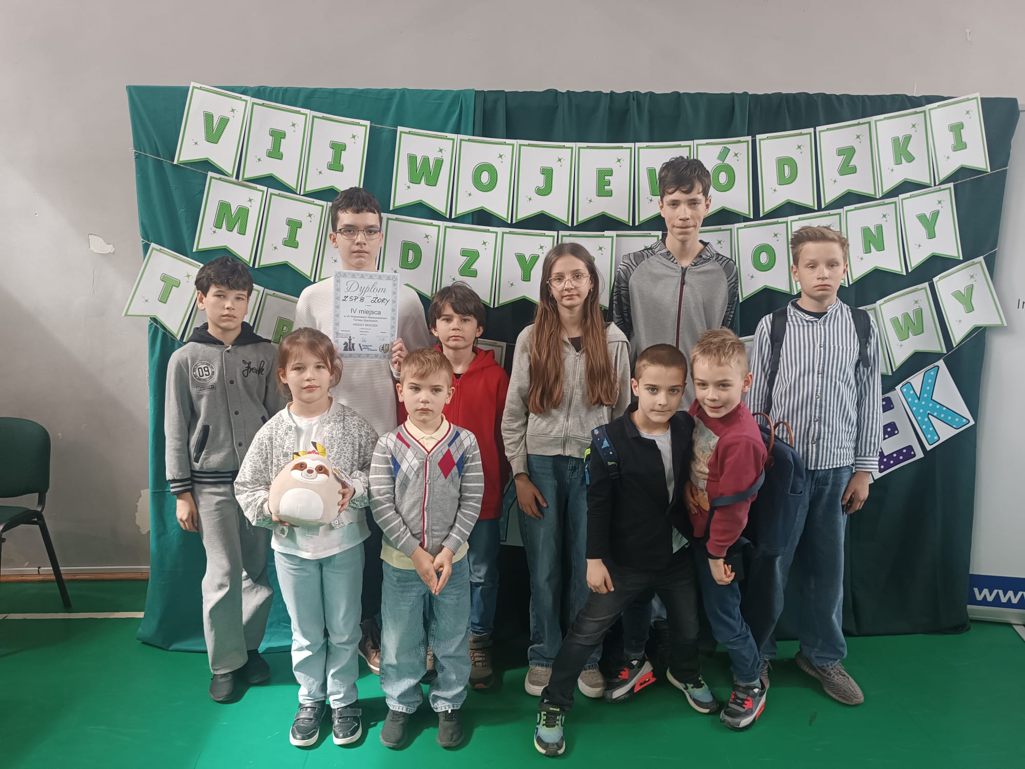 Na zdjęciu: uczniowie naszej szkoły, biorący udział w VII Wojewódzkim Międzyszkolnym Turnieju Szachowym „Wesoły Skoczek” z otrzymanym dyplomem