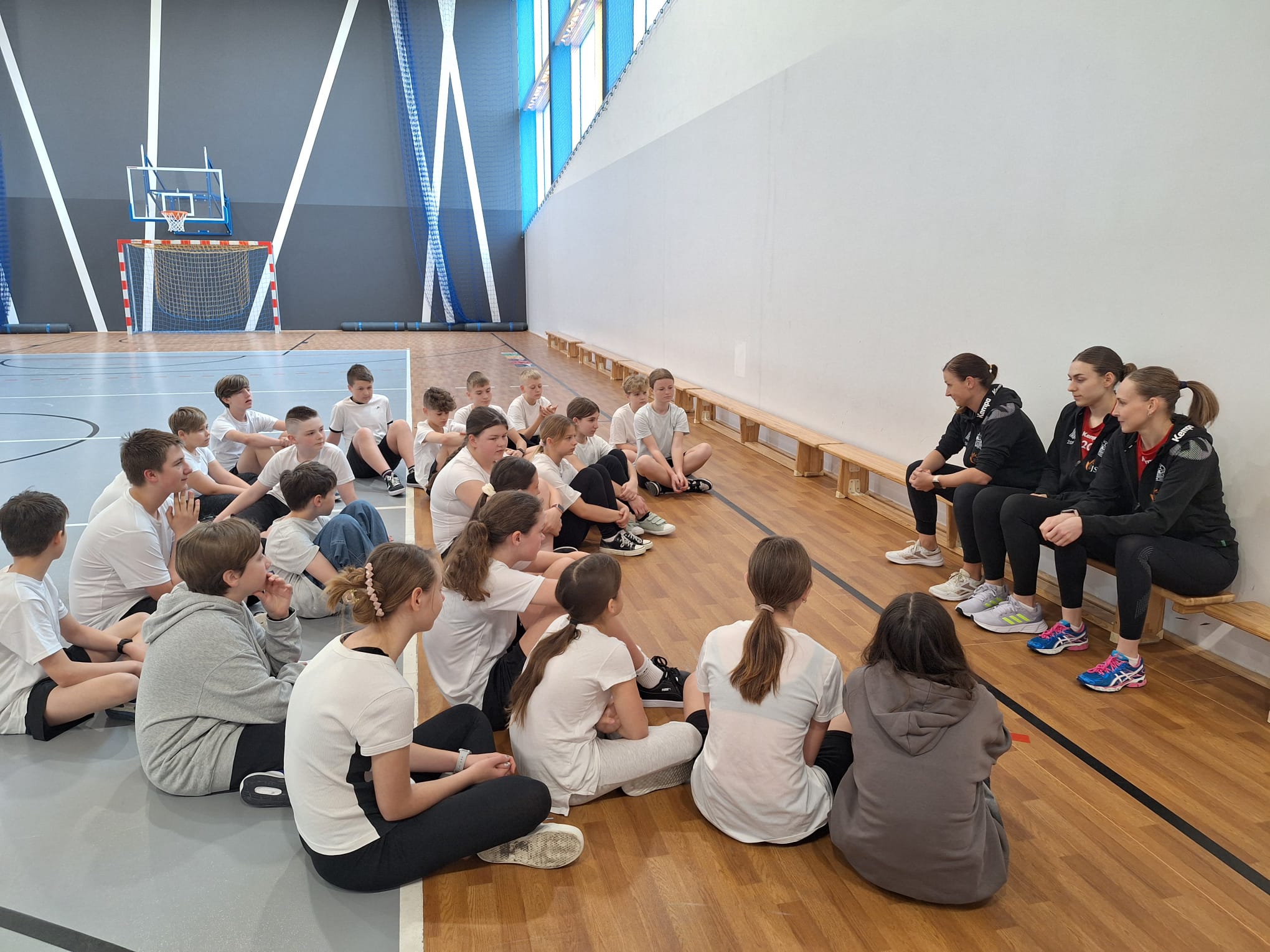 Dzisiaj odbyły się kolejne, bardzo ciekawe zajęcia z piłki ręcznej dla klas: 6a i 6b, poprowadzone przez wspaniałe Trenerki i Zawodniczki MTS Żory: Agnieszkę Gawron, Olesię Donets oraz Karolinę Herian.