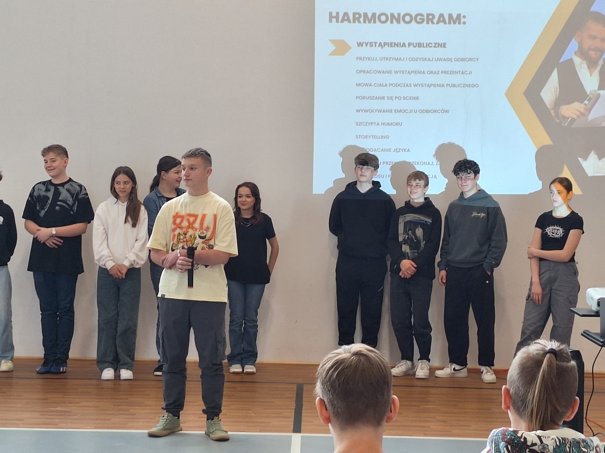 „Mów tak, aby inni słuchali” – to tytuł warsztatów z serii: „Magia wystąpień publicznych i mowy ciała”, które poprowadziła dla naszej Młodzieży szkolnej Pani Anna Ujma – trenerka z zakresu wystąpień publicznych, mowy ciała, autoprezentacji i motywacji.