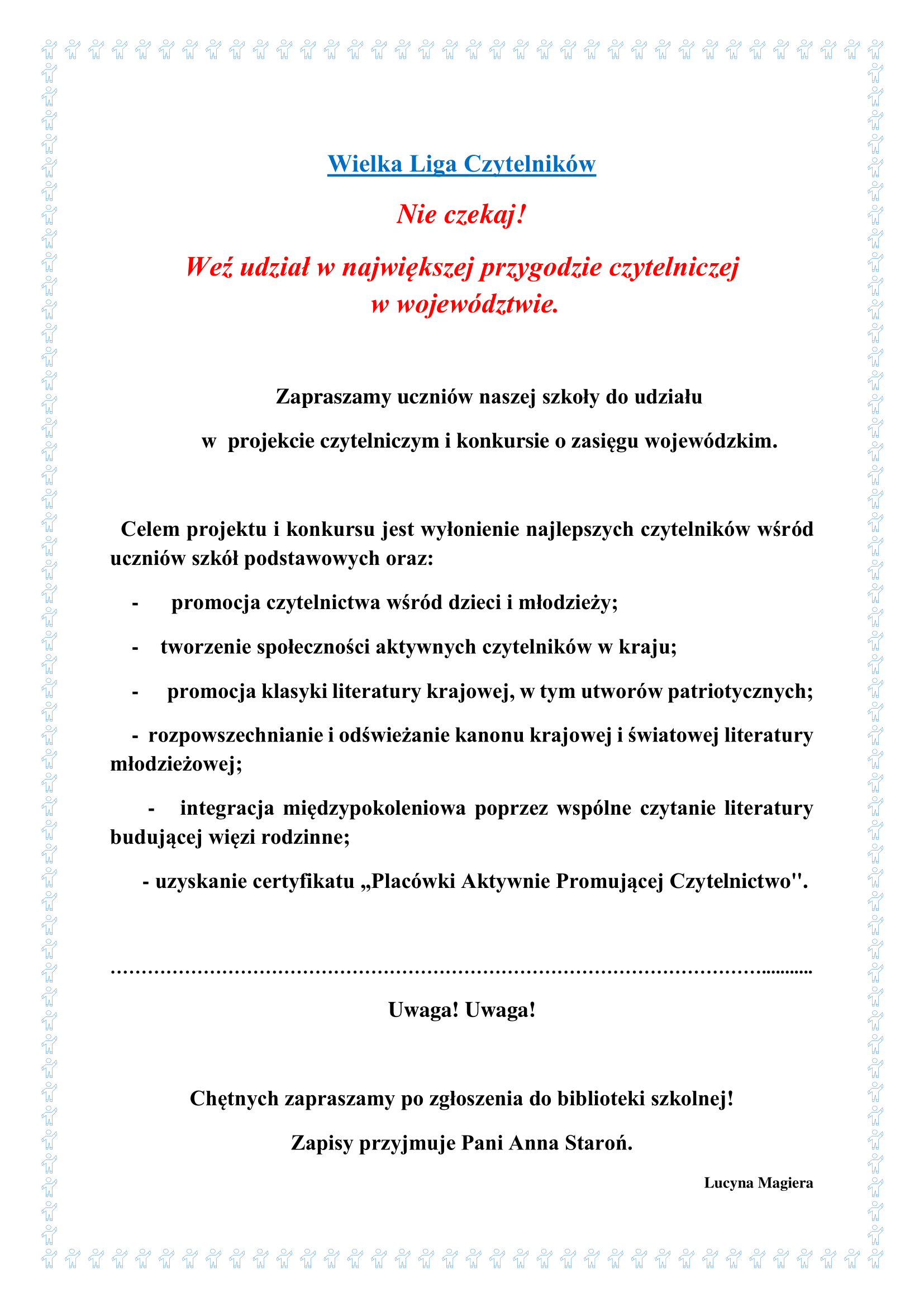 BIBLIOTEKA SZKOLNA w roku szkolnym 2025/2026