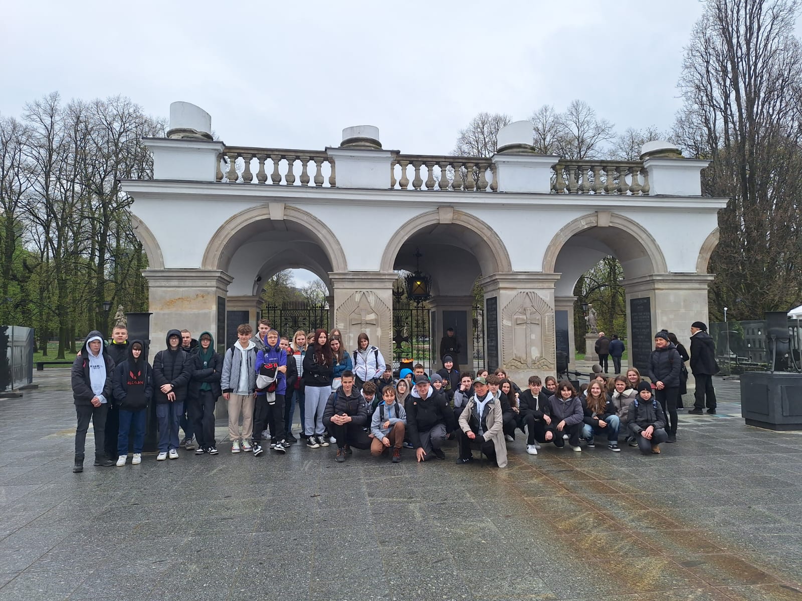 Na zdjęciu: uczniowie klas 6,7,8 na wycieczce w Warszawie na tle Grobu Nieznanego Żołnierza