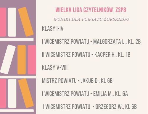 Posted on 13 czerwca 2020 by szkola8zory Posted in Bez kategorii Z wielką przyjemnością przedstawiamy laureatów Wielkiej Ligi Czytelników. Serdecznie gratulujemy zwycięzcom.
