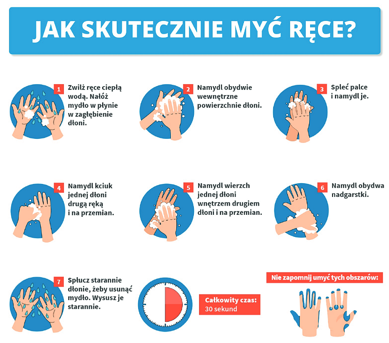 W związku z informacjami na temat rozprzestrzeniania się koronawirusa zwracamy szczególną uwagę na konieczność zachowania higieny i częste mycie rąk zgodnie