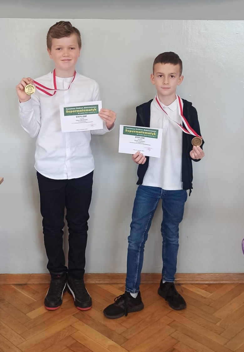 W minioną środę uczniowie z klas 3a i 3b – Oskar Miedziński oraz Bruno Gruszka reprezentowali naszą szkołę podczas XVI Powiatowego Konkursu Matematycznego dla uczniów klas III o tytuł „Supermatematyka”, którego organizatorem była SP nr 9 w Żorach. W konkursie wzięli udział najlepsi młodzi matematycy z całego miasta, zaś poziom był bardzo wysoki i wyrównany. Nasi reprezentanci świetnie sobie poradzili z zawiłościami królowej nauk uzyskując wysoką punktację. Oskar był tuż przed podium – brał udział w dogrywce o tytuł Supermatematyka – niestety zabrakło troszeczkę szczęścia. Gratulujemy chłopcom wyników zachęcając jednocześnie do dalszego rozwoju matematycznych zdolności. Życzymy powodzenia w kolejnych matematycznych konkursach. M. Przybyło