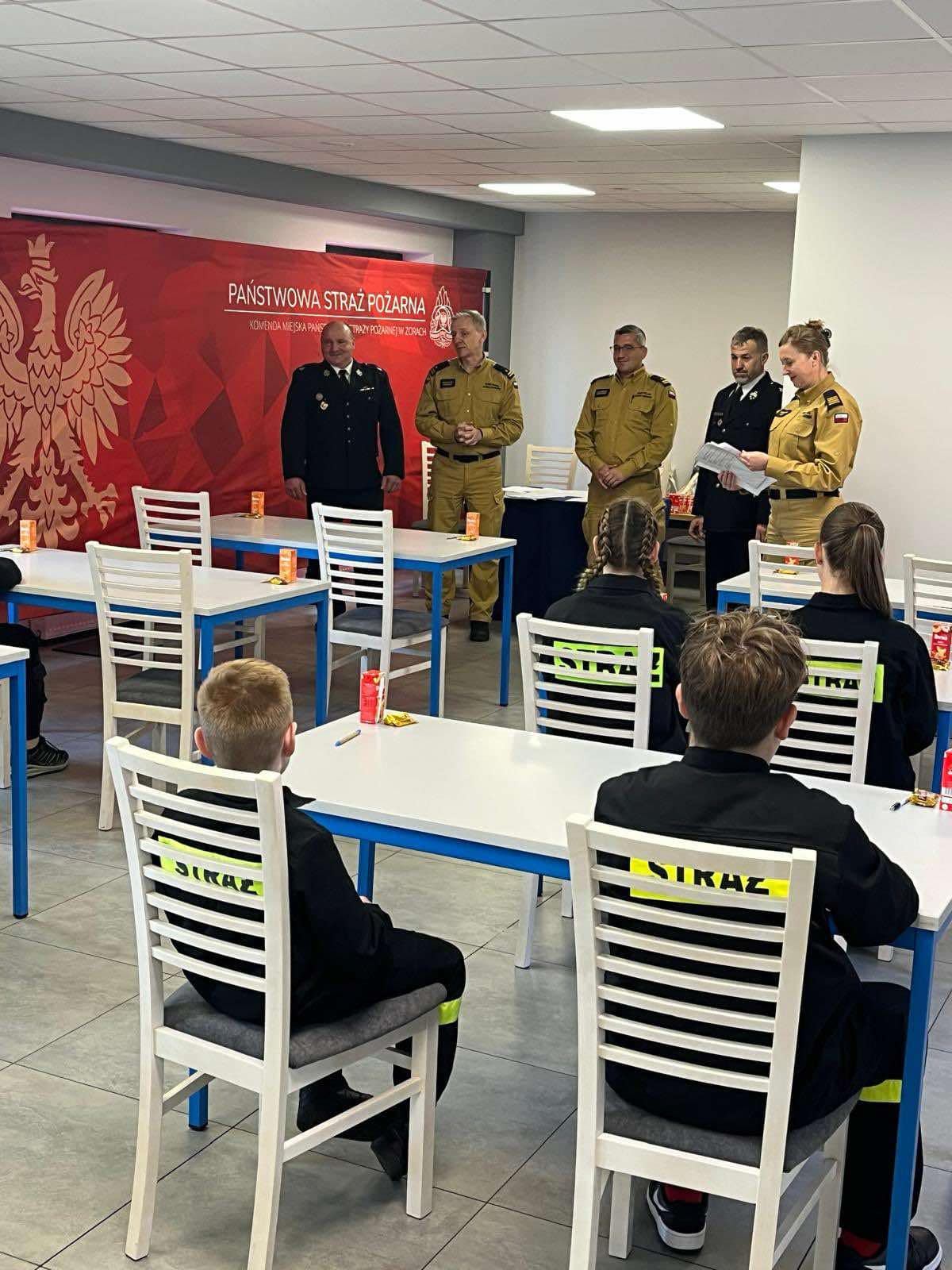 Na zdjęciu: Michał Wnuk podczas Ogólnopolskiego Turnieju Wiedzy Pożarniczej, Michał Wnuk, organizatorzy oraz inni uczestnicy Ogólnopolskiego Turnieju Wiedzy Pożarniczej.